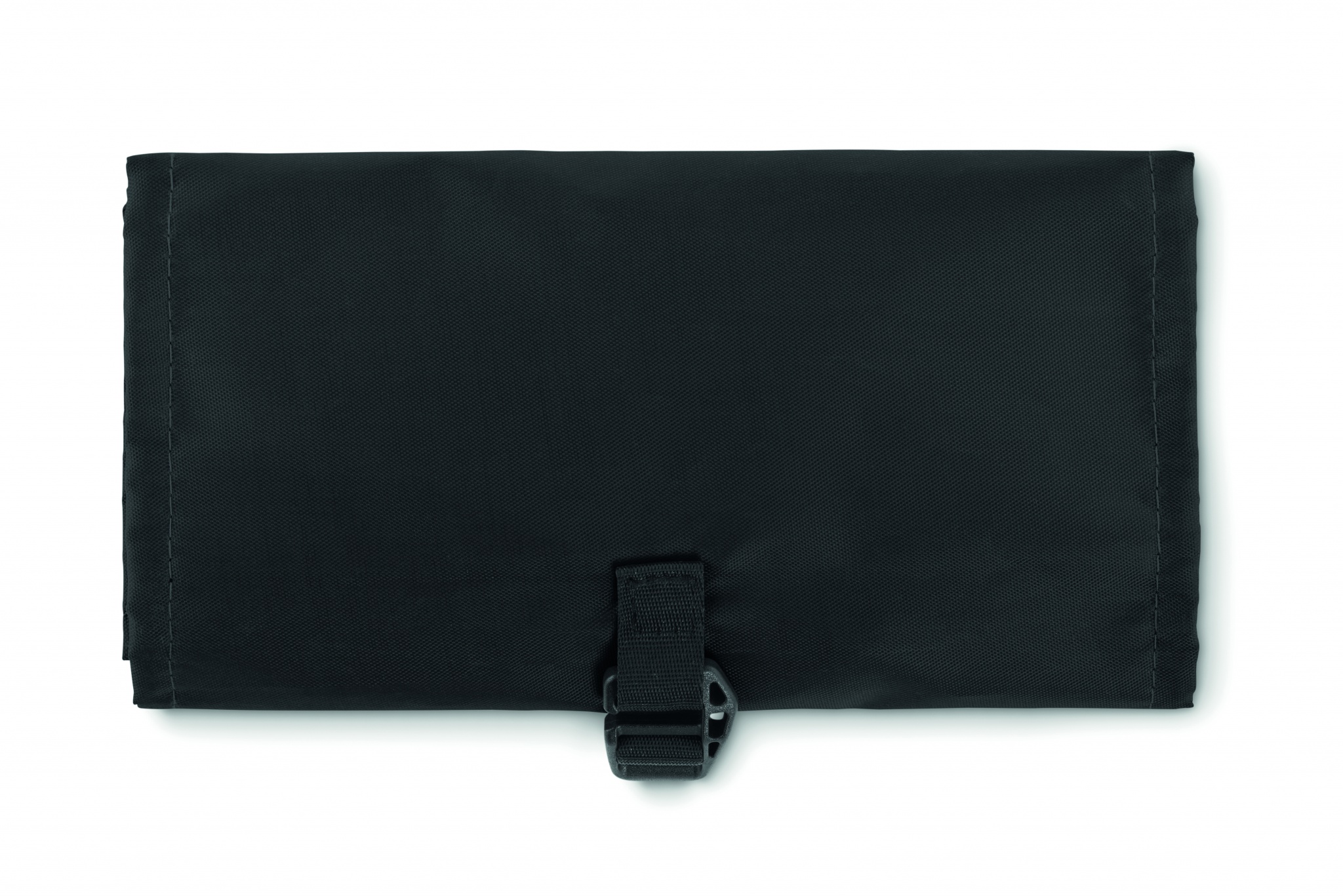 210D RPET kaablirullikoti korraldaja. Sellel on RPET-võrk, millel on 3 lukuga sektsiooni. Seda kotti saab kasutada ka kosmeetikakotina.