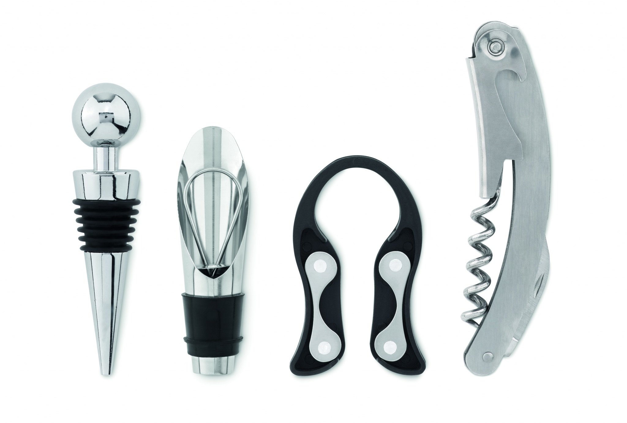 Logotrade reklaamkingid pilt: 4-osaline veinikomplekt puidust alusel