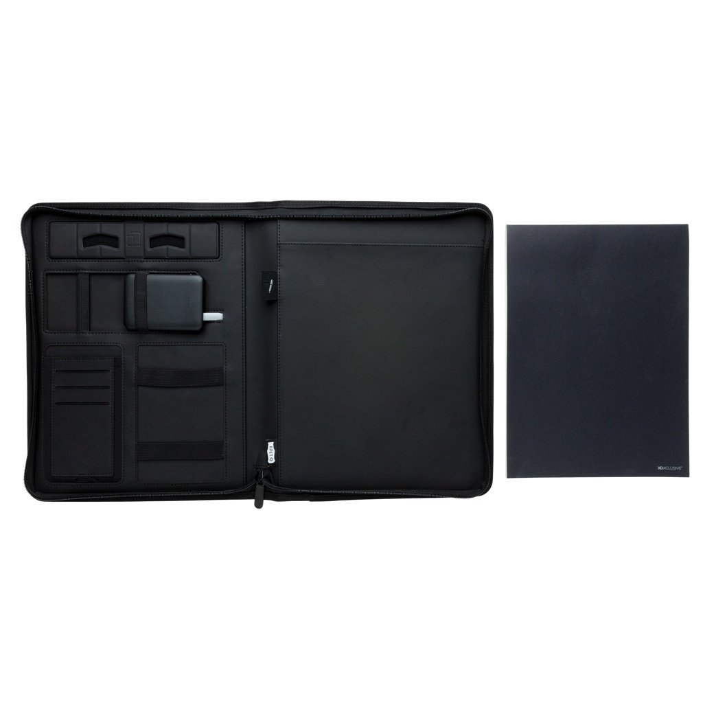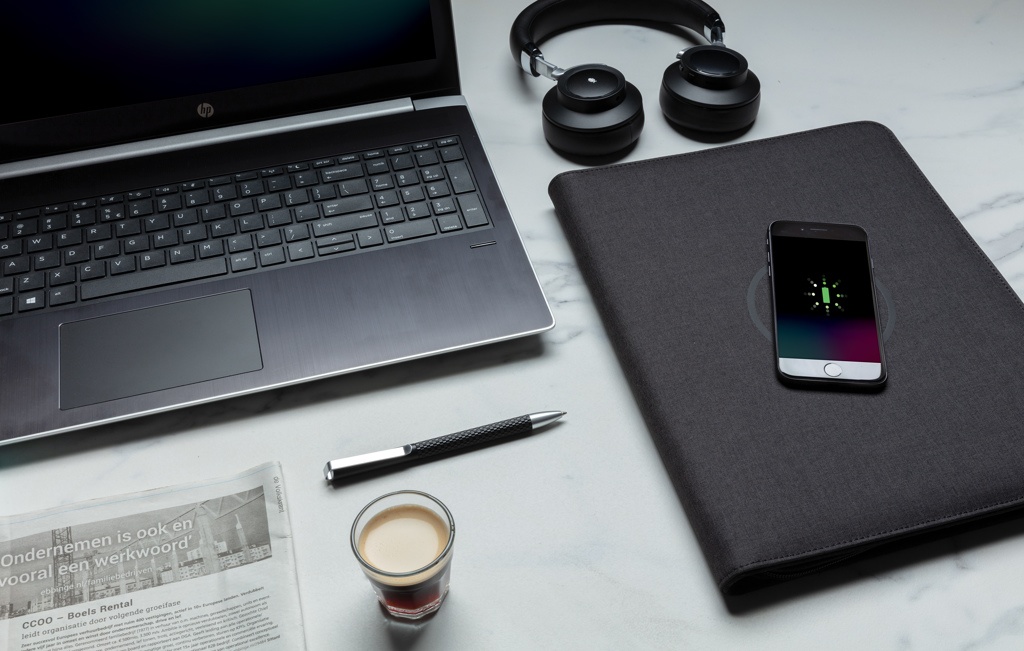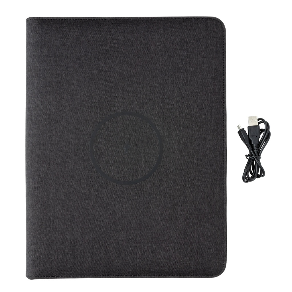 See A4-formaadis portfolio-märkmik sisaldab uusimat tehnoloogiat. Esikaanel on juhtmevaba laadimisalus teie telefoni jaoks. (Androidi uusimad põlvkonnad, iPhone 8 ja uuemad). Vanemaid telefone ja tahvelarvuteid saab laadida USB-portide kaudu välise 5000 mAh toitepangaga. Sisend: 5,0V/2,1A. Väljund 1: 5,0V/2,1A. Väljund 2: 5,0 V/2,1 A. Juhtmeta väljund: 5 W. Registreeritud disain®