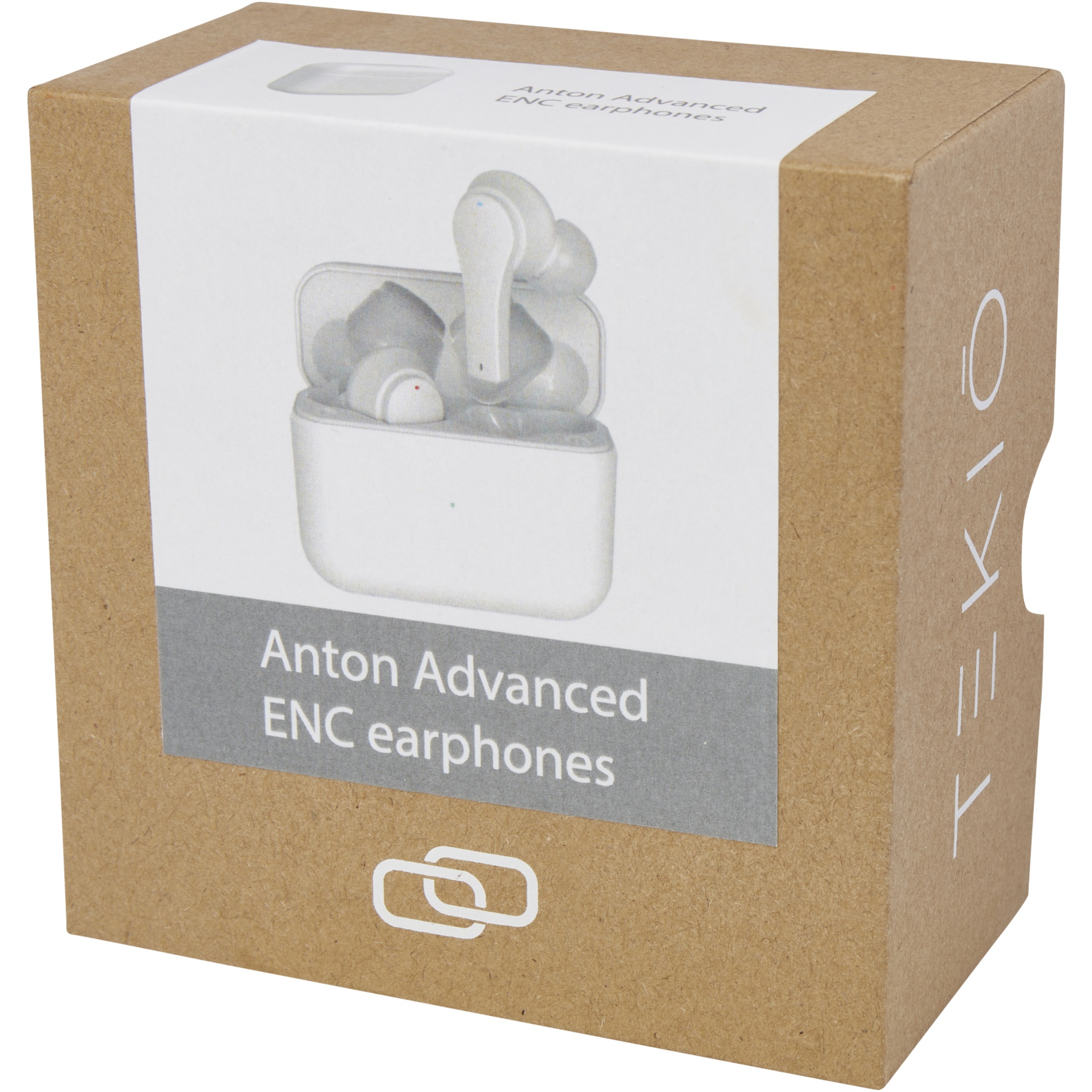 Anton Advanced ENC kõrvaklapid on varustatud uusima helitehnoloogiaga. Pärast ümbrise avamist lülituvad kõrvaklapid sisse ja sünkroonivad need automaatselt üksteisega. Korpus toimib ka kõrvaklappide toitepangana ja seda saab laadida kaasasoleva C-tüüpi kaabliga. Kui ümbrise 400 mAh aku on laetud, laeb see kõrvaklappe 4 korda 0-100%. Üle 4,5-tunnise taasesitusaja maksimaalse helitugevusega ühe laadimisega on need kohustuslikud igale reisijale või mängijale. Sisseehitatud Environmental Noise Cancellation (ENC) abil blokeerivad kõrvaklapid ümbritsevad helid ja võtavad kõnede või videomängude puhul kuulda ainult teie häält, mistõttu on teisel inimesel teid lihtne kuulda. Kõrvaklappidel on sisseehitatud muusika juhtnupud ja topeltmikrofonid käed-vabad kasutamiseks. Kõrvaklappide täielikuks laadimiseks kulub 1,5 tundi ja ümbrist saab laadida alla 2 tunniga. Mängurežiim: madal latentsusaeg 70–75 ms. Tarnitakse meie esmaklassilises Tekiō jõupaberikarbis, millel on värviline kleebis.