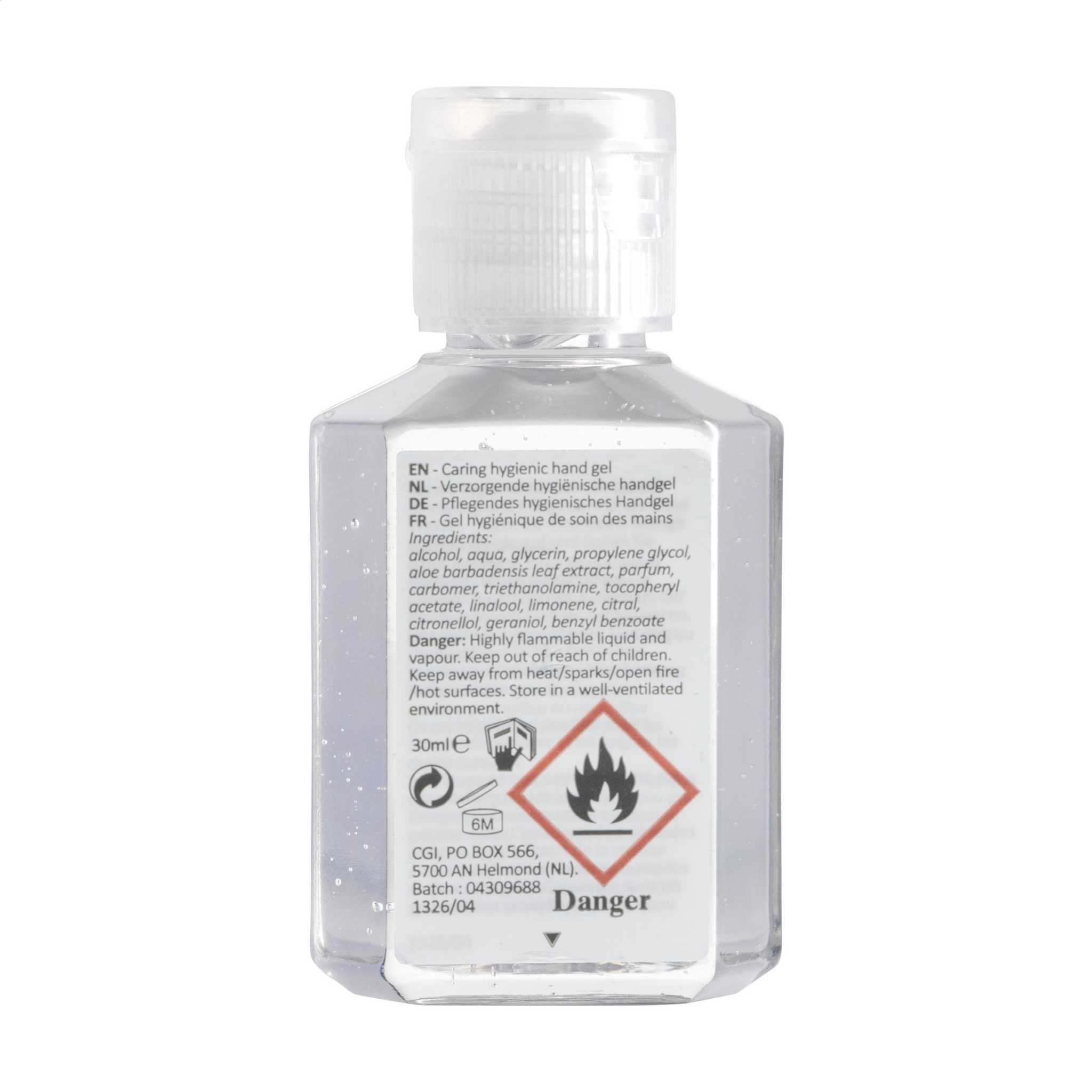 See hügieeniline kätegeel aitab käsi puhastada ja hooldada ilma vee ja seebita. Geel on meeldiva lõhnaga ja hoiab käed niisutatuna tänu hooldavatele koostisainetele nagu Aloe Vera. Käepärases läbipaistvas plastmassist (PET) klapiga purgis. Sisu 30 ml.