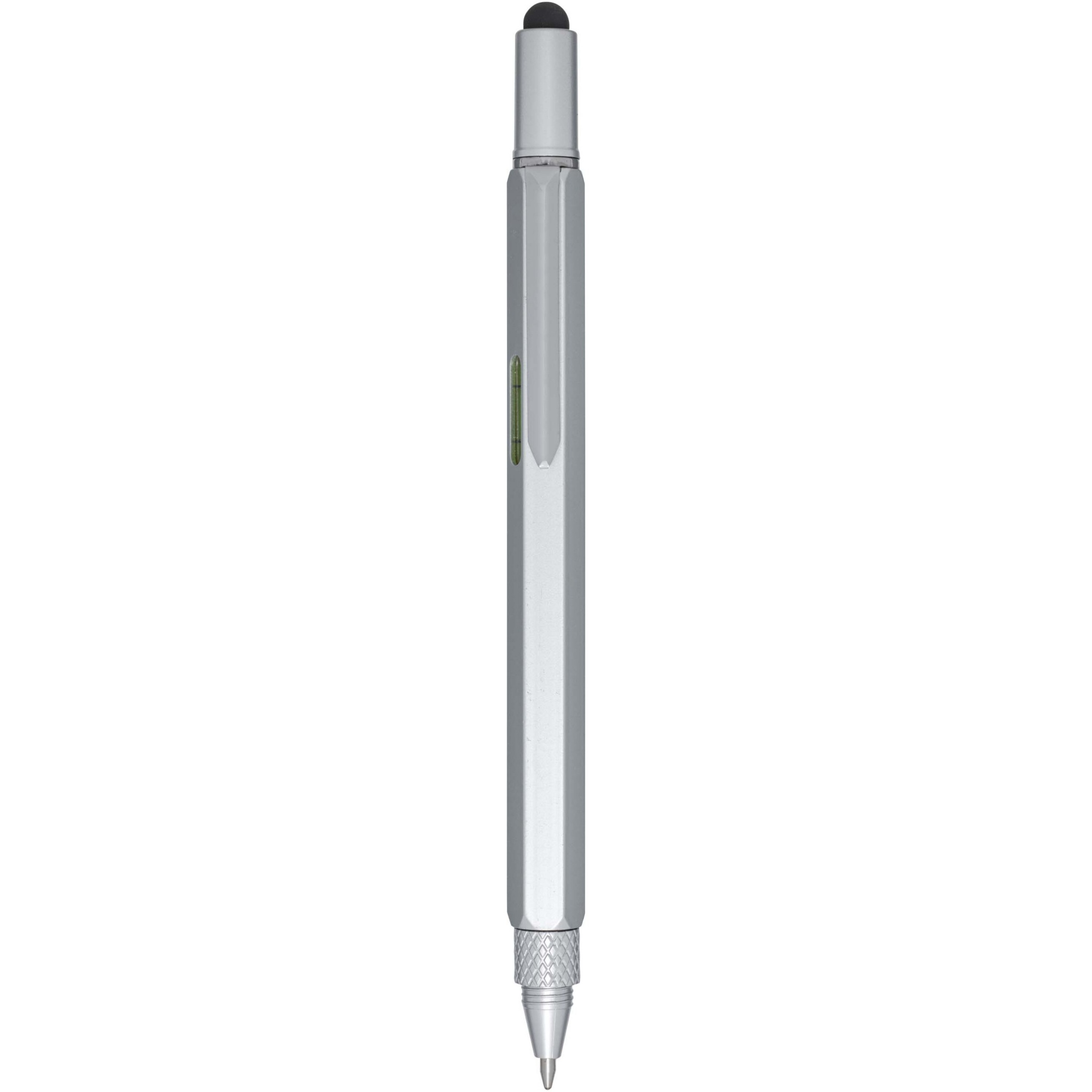Dora alumiiniumist multifunktsionaalne pastapliiats on osaliselt valmistatud taaskasutatud materjalidest ning sellel on kahepoolne joonlaud, hoob, kruvikeeraja, gradient ja must kummist pliiats. Tünn on valmistatud taaskasutatud alumiiniumist, hõbedase pihustuskattega. Klamber on valmistatud rauast. Kruvikeeraja on valmistatud terasest. Ülemine osa ja ots on valmistatud RABS-ist. Tindi värv: must. Kirjutamise pikkus: 400 meetrit. Otsa suurus: 1,0 mm.