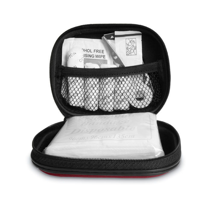 EVA materjalist esmaabikomplekt. Kaasas 1 paar kääre, 3 padjakest, 1 kolmnurkside, 1 rull vati, 2 puhastuslappi, 5 kleepuvat sidet, 1 rull teipi ja 6 vatitupsu.
