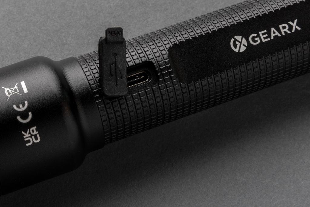 Logo trade meened foto: Gear X RCS taaskasutatud alumiiniumist USB-taaslaetav suur taskulamp