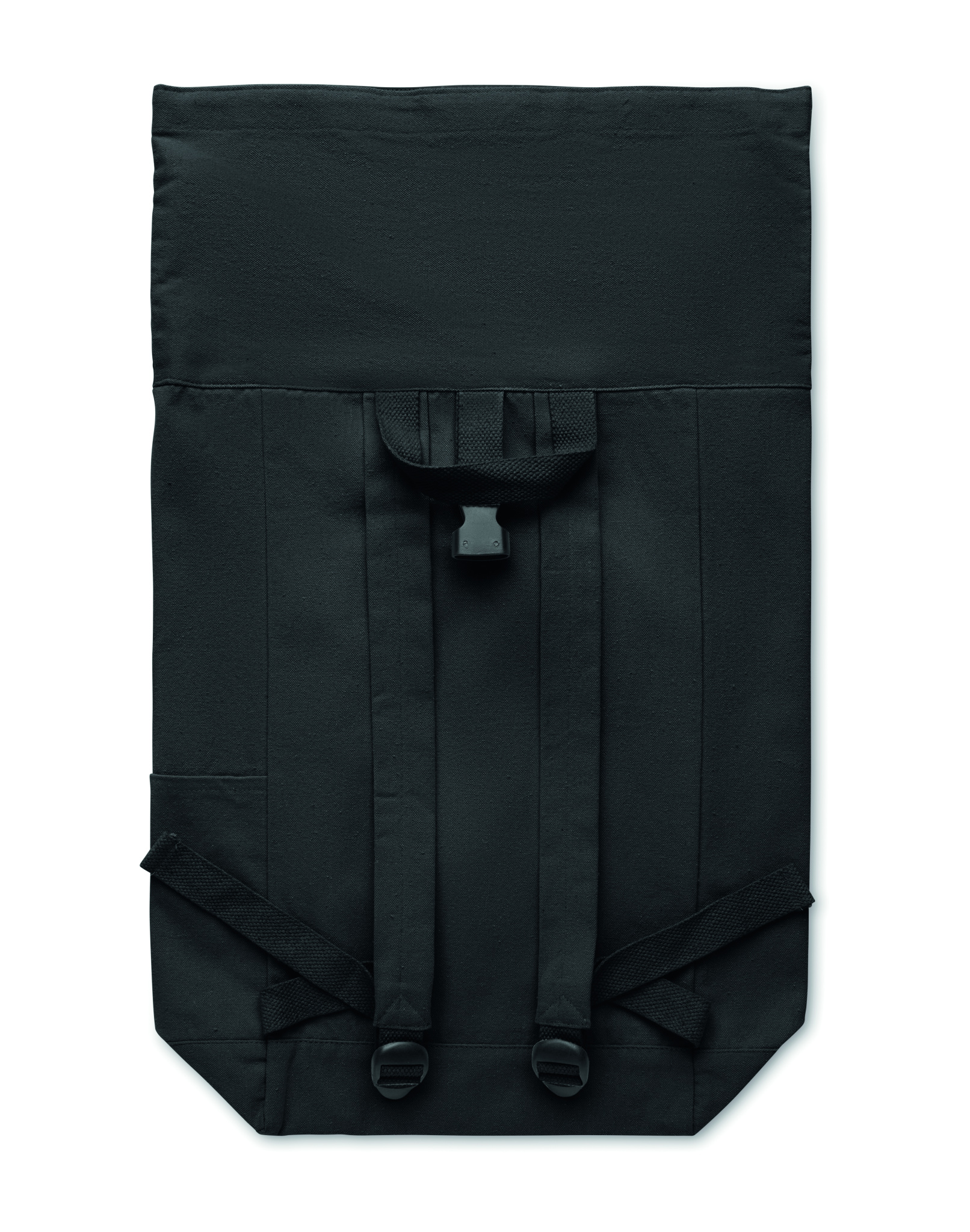 Must rull seljakott 390 gr/m² taaskasutatud puuvillast (80%) ja taaskasutatud polüestrist (20%). Tõmblukuga esitasku.