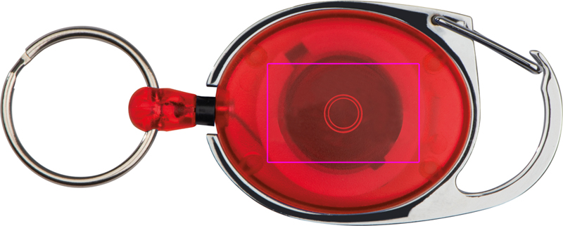 Võtmehoidja väikese haagise, vööklambri ja väljatõmmatava võtmehoidjaga. Teie logo trükitakse värvilisele plastalale.