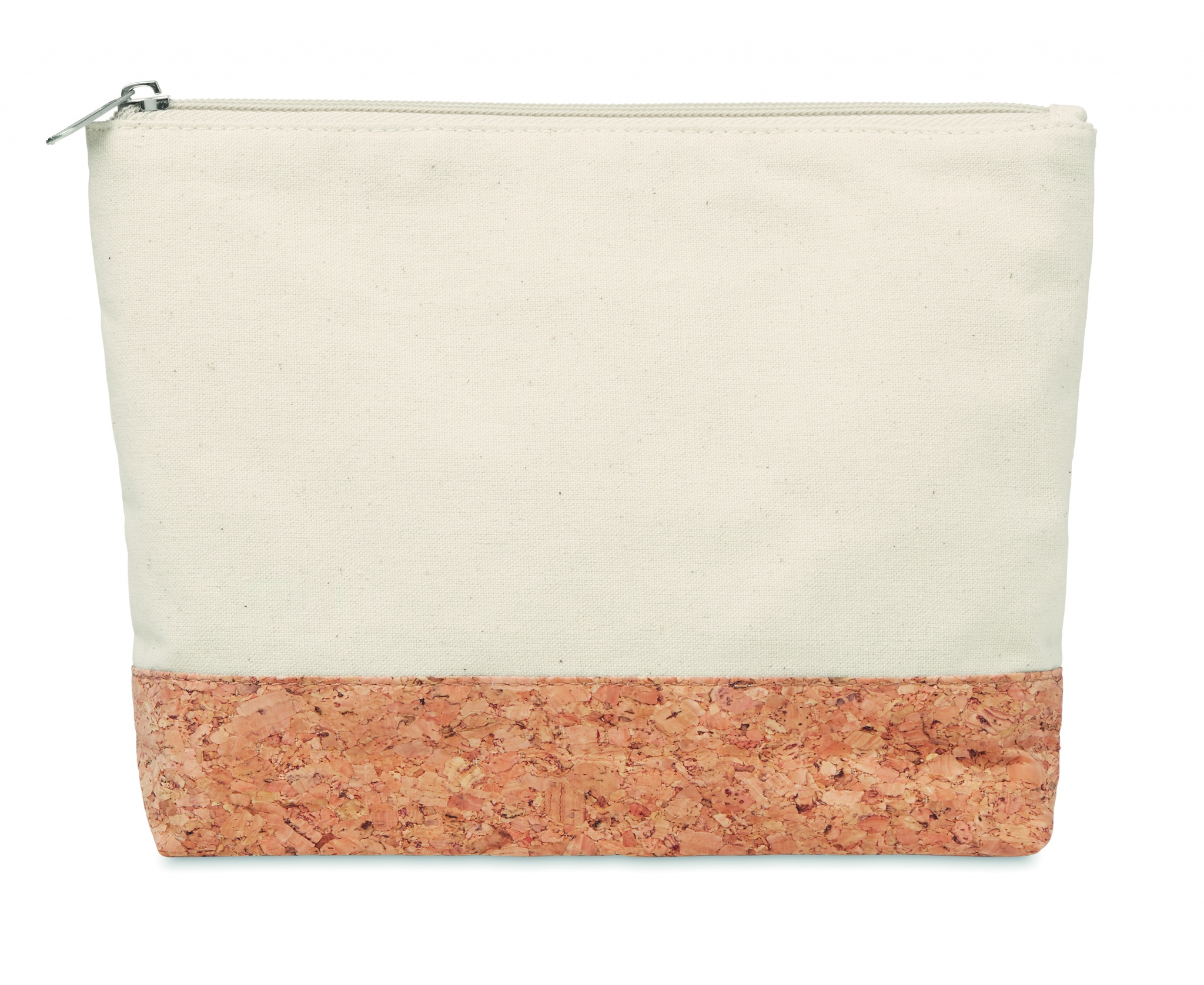 Puuvillane kosmeetikakott, mille allosas on korkdetailid. 220 gr/m². Kork on looduslik materjal, mille struktuurse iseloomu ja pinna poorsuse tõttu võib lõpptulemus eseme kohta esineda kõrvalekaldeid.
