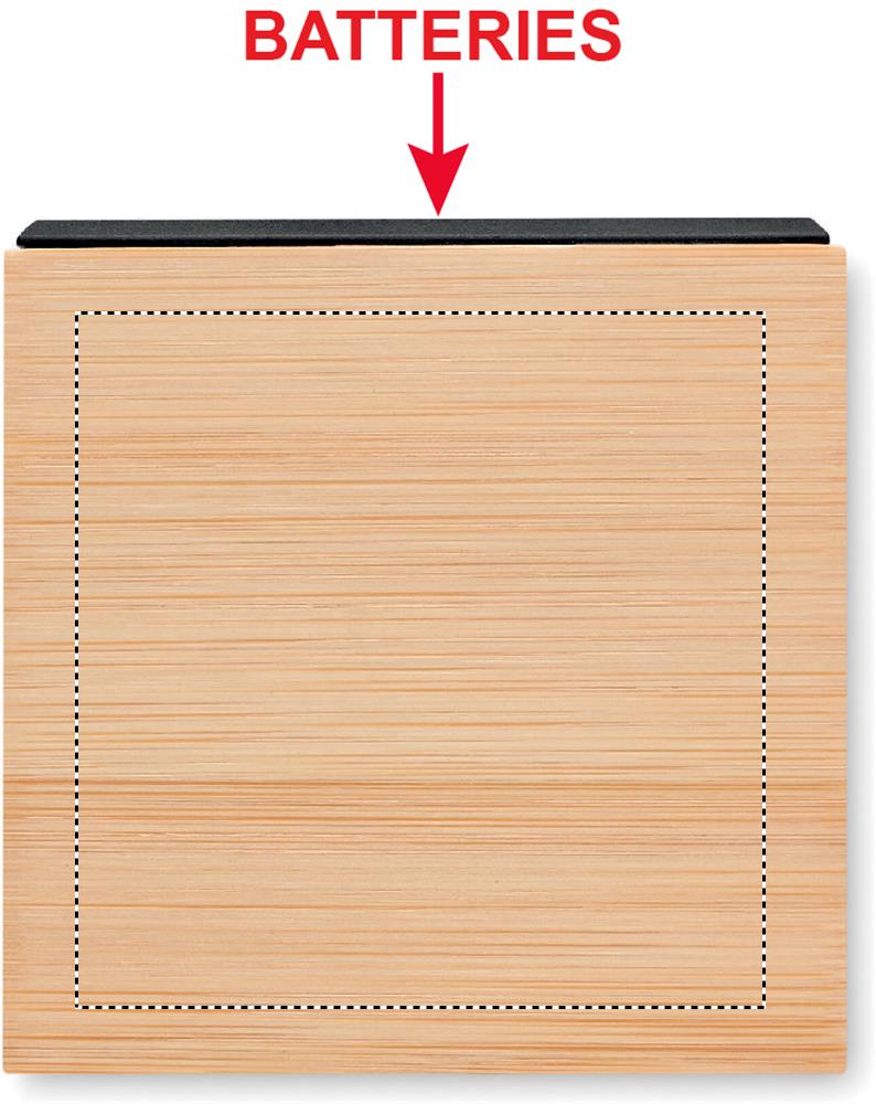 Logo trade reklaamtooted foto: Kuubikukujuline bambusest LED äratuskell Dortmund