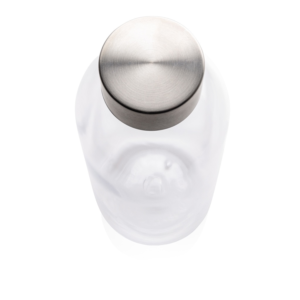 Lekkekindel veepudel metallist kaanega, läbipaistev