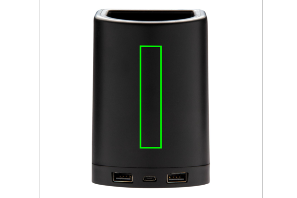 Laadige oma mobiilseadmeid ilma kaablit ühendamata selle ainulaadse kaks ühes lauatarvikuga. Lihtsalt asetage mobiiltelefon alusele ja oodake, kuni kuvatakse laadimisteade. Laadija võimaldab teil hoida ka kirjatarvete tarvikuid, nagu pastakad või pliiatsid. See laadija annab teile võimaluse kaunistada elemendil oma logoga, pärast ühendamist süttib see optimaalse särituse tagamiseks. Ühildub kõigi QI-toega seadmetega, nagu android uusima põlvkonna, iPhone 8 ja uuemad. Sisend: 5V/3A. Juhtmeta väljund: 5V/1A 5W. Kaasas 150 cm micro usb kaabel.