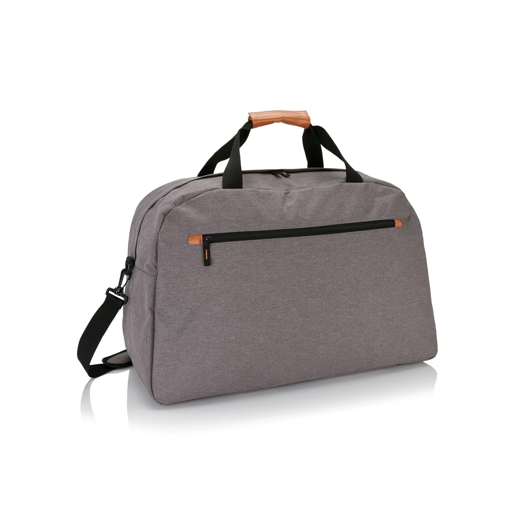 600D 2-tooniline polüestrist reisikott, mille sangadel ja tõmblukkudel on moekad pruunid detailid.