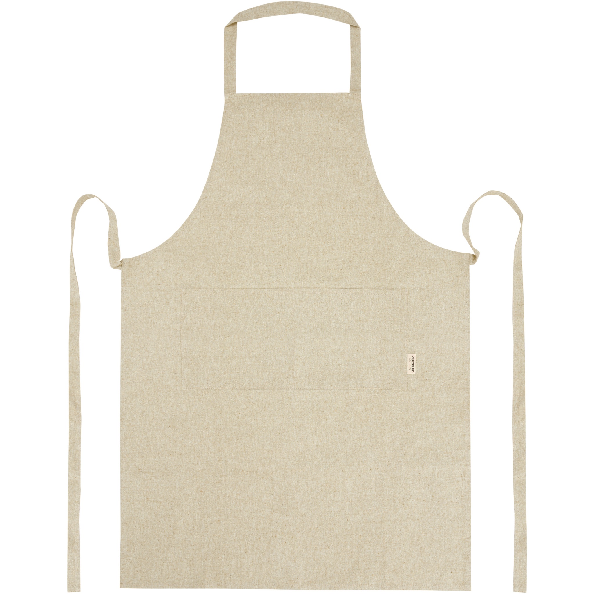 Põll 200 g/m² taaskasutatud puuvillasest polüestri segust. Sellel on 2 kõrvuti asetsevat taskut, mille kombineeritud suurus on 45 x 20 cm, ja 1-meetrine lipsukinnis. Taaskasutatud puuvilla toodetakse tarbimiseelsetest jäätmetest, mis tekivad tekstiilitehastes lõikamisprotsessi käigus. Taaskasutatud puuvilla olemuse tõttu võib esineda väga väikest värvimuutust. See funktsioon lisab selgelt autentsema välimuse. Kaelarihma pikkus: 55 cm.
