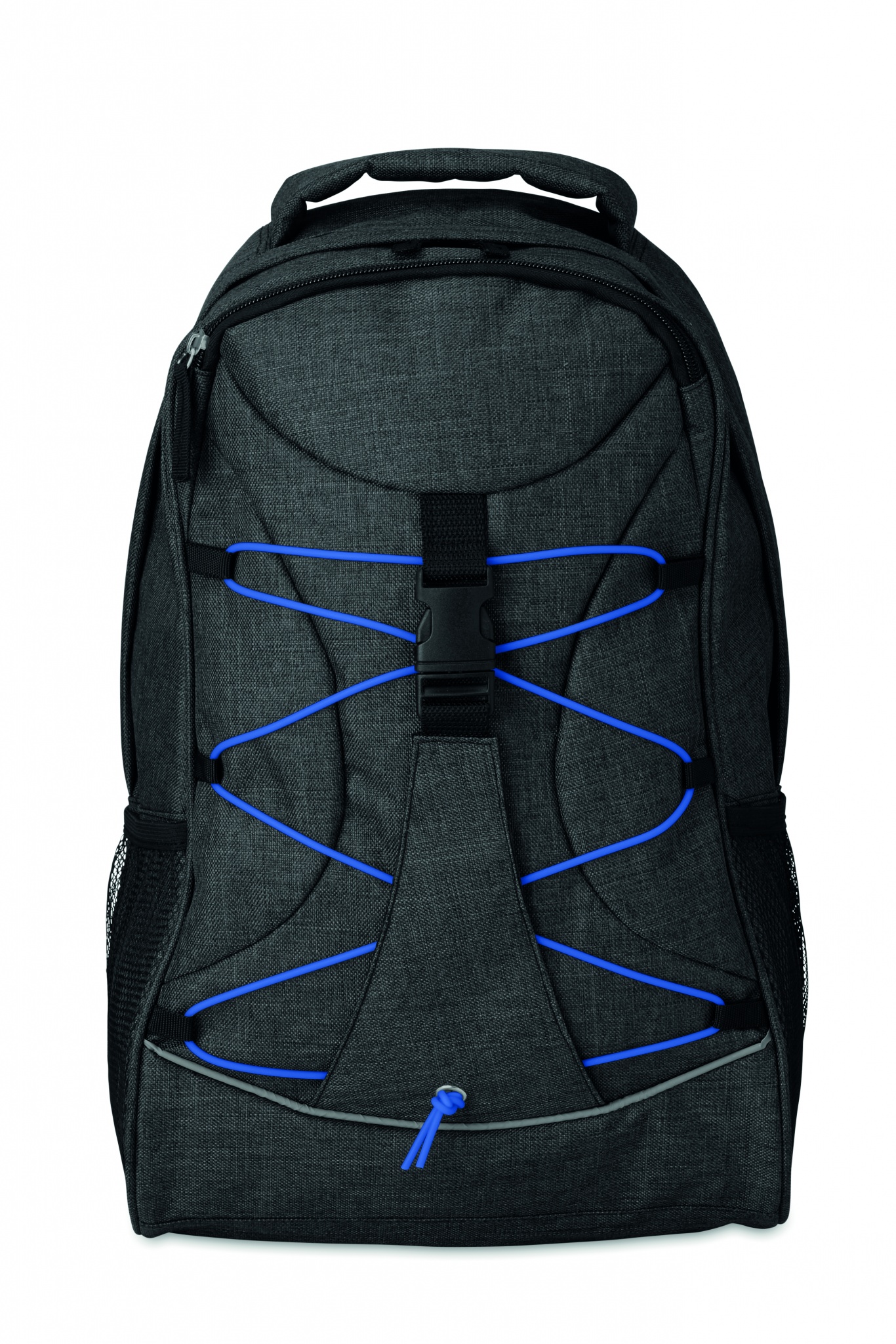 600D 2-toonist polüestrist seljakott, millel on värviline kontrastne pealispind ja helendav esipaneelil olev tumedas nööris. Võrktaskud mõlemal küljel.