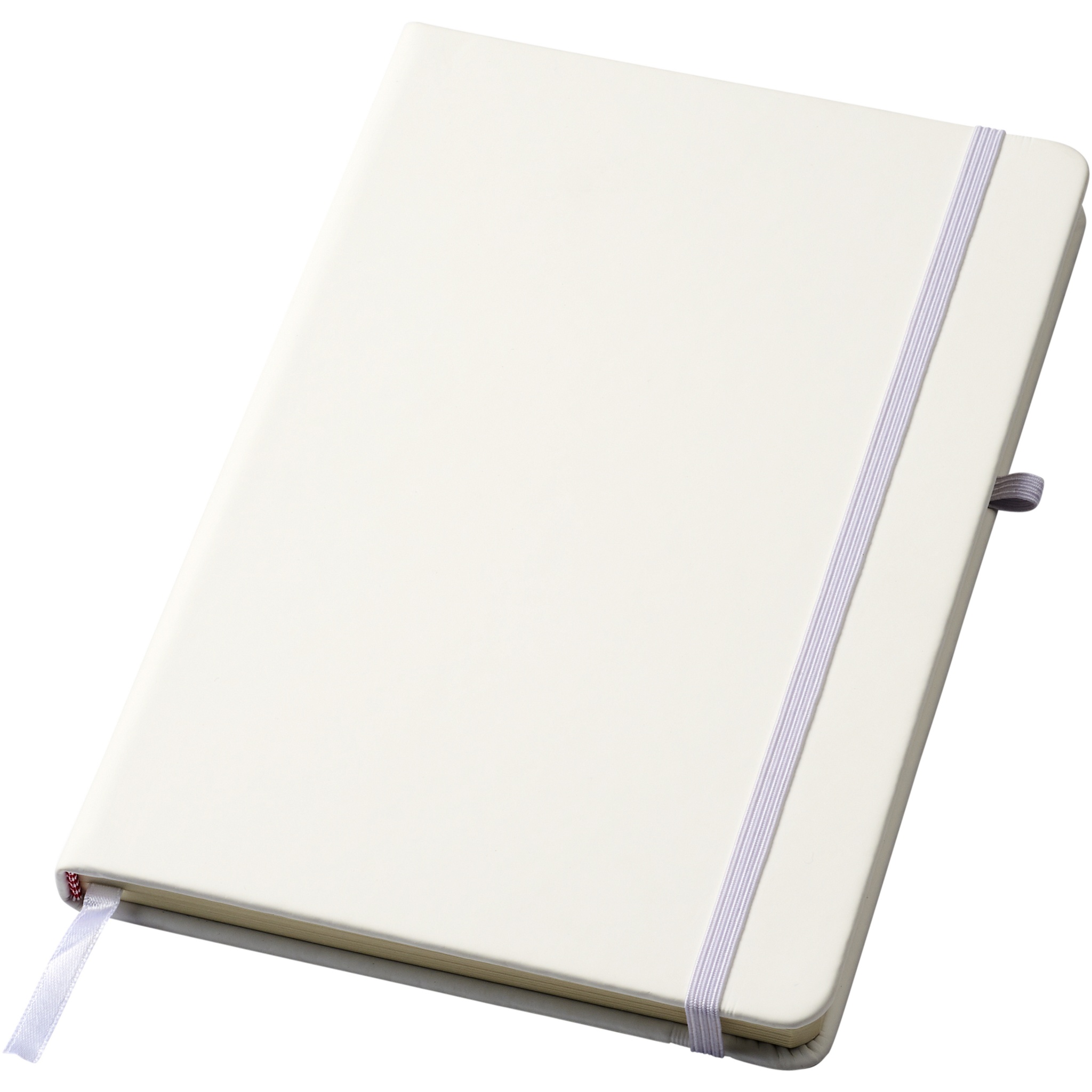 A5 võrdlussuuruses märkmik sobiva värvi elastse sulguri, pliiatsi aasa ja paelaga. Sisaldab 96 lehte 70g/m2 joonelist paberit. Pehme tunnetusega PU kate.
