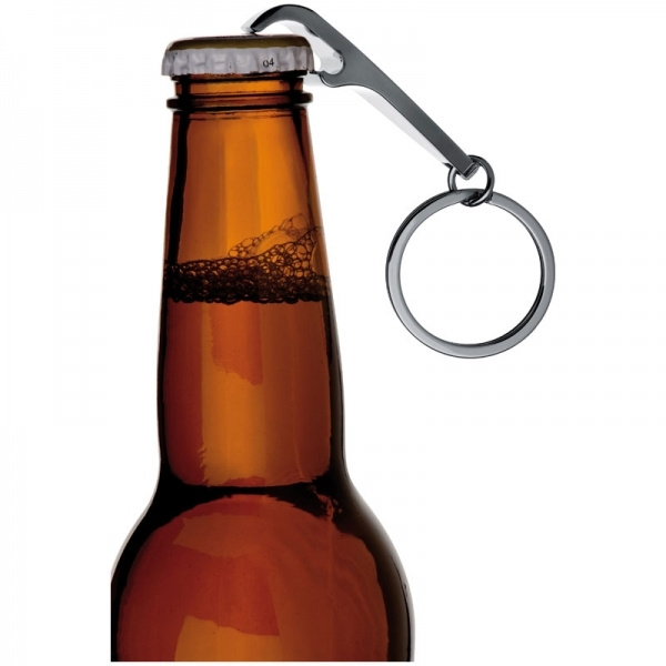 Kroomitud metallist pudeliavaja võtmehoidjaga. Me rakendame teie logo graveerimise teel.