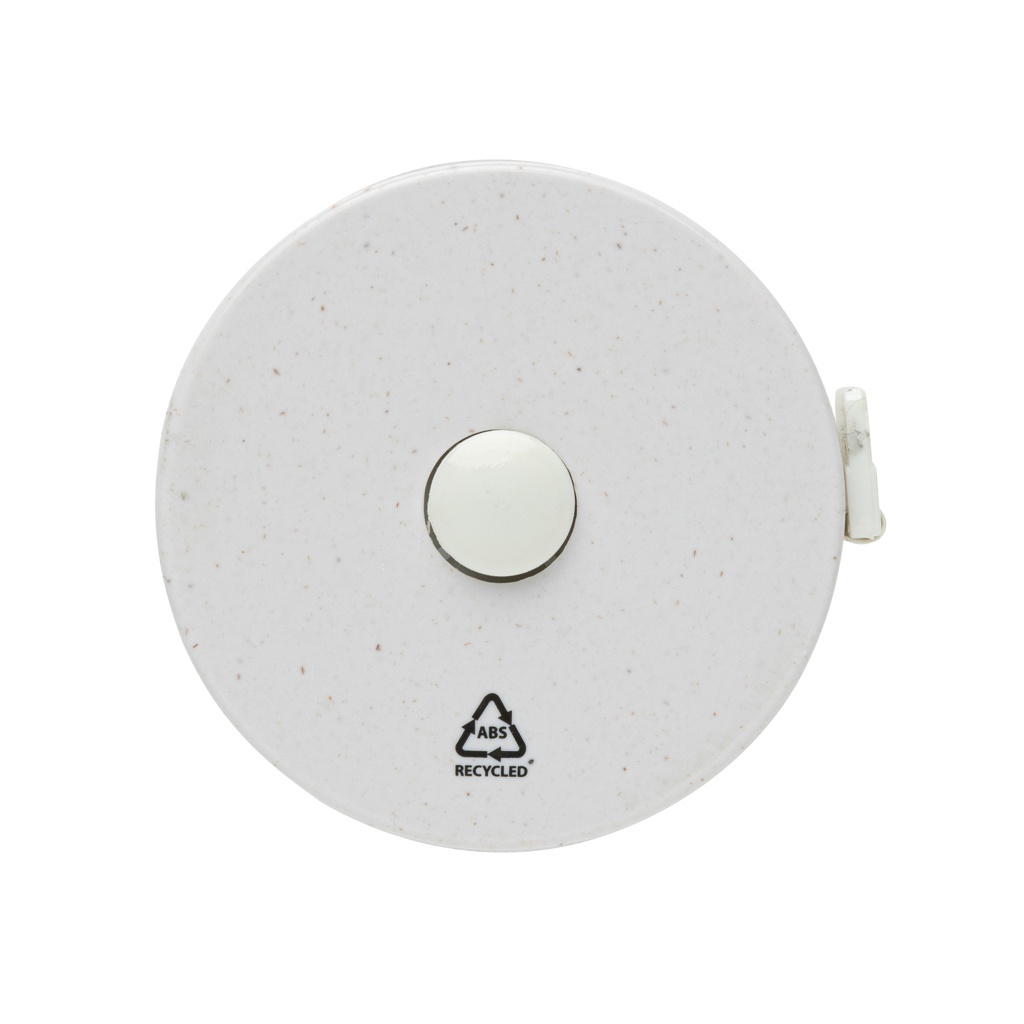 1,5 m/60-tolline taaskasutatud plastist lint koos tagasitõmbamisnupuga, treeningu ja moe jaoks. Korpus on valmistatud RCS-sertifikaadiga taaskasutatud ABS-plastist, klaaskiust ja FSC® 100% bambusest. Taaskasutatud kogusisaldus: 64% eseme kogukaalust. RCS-sertifikaat tagab taaskasutatud materjalide täielikult sertifitseeritud tarneahela. Lint on 8 mm lai ja nupuga sissetõmmatav. Pakitud FSC® segupakendisse.