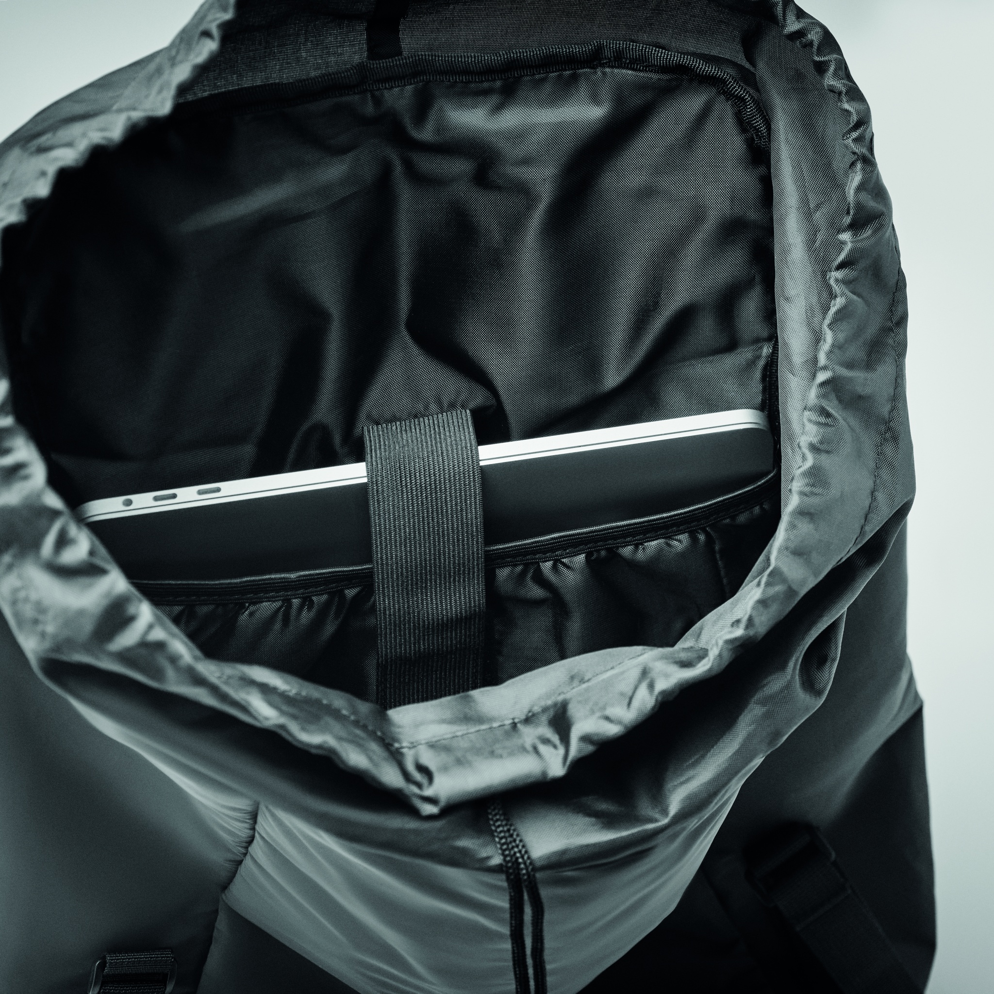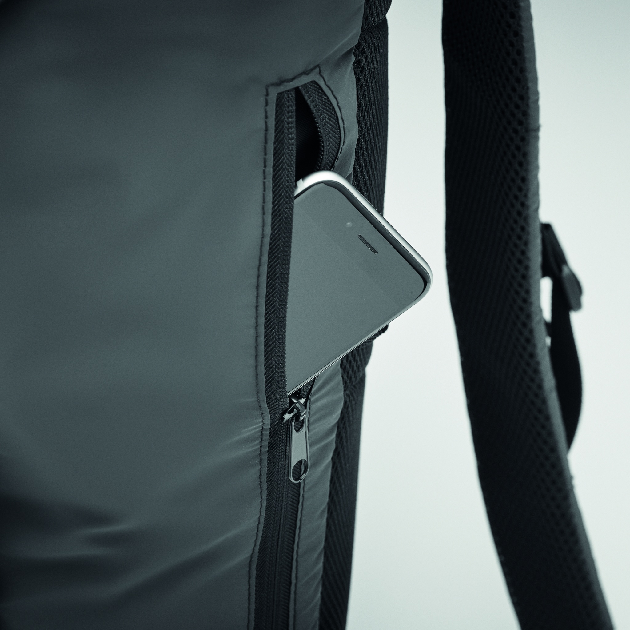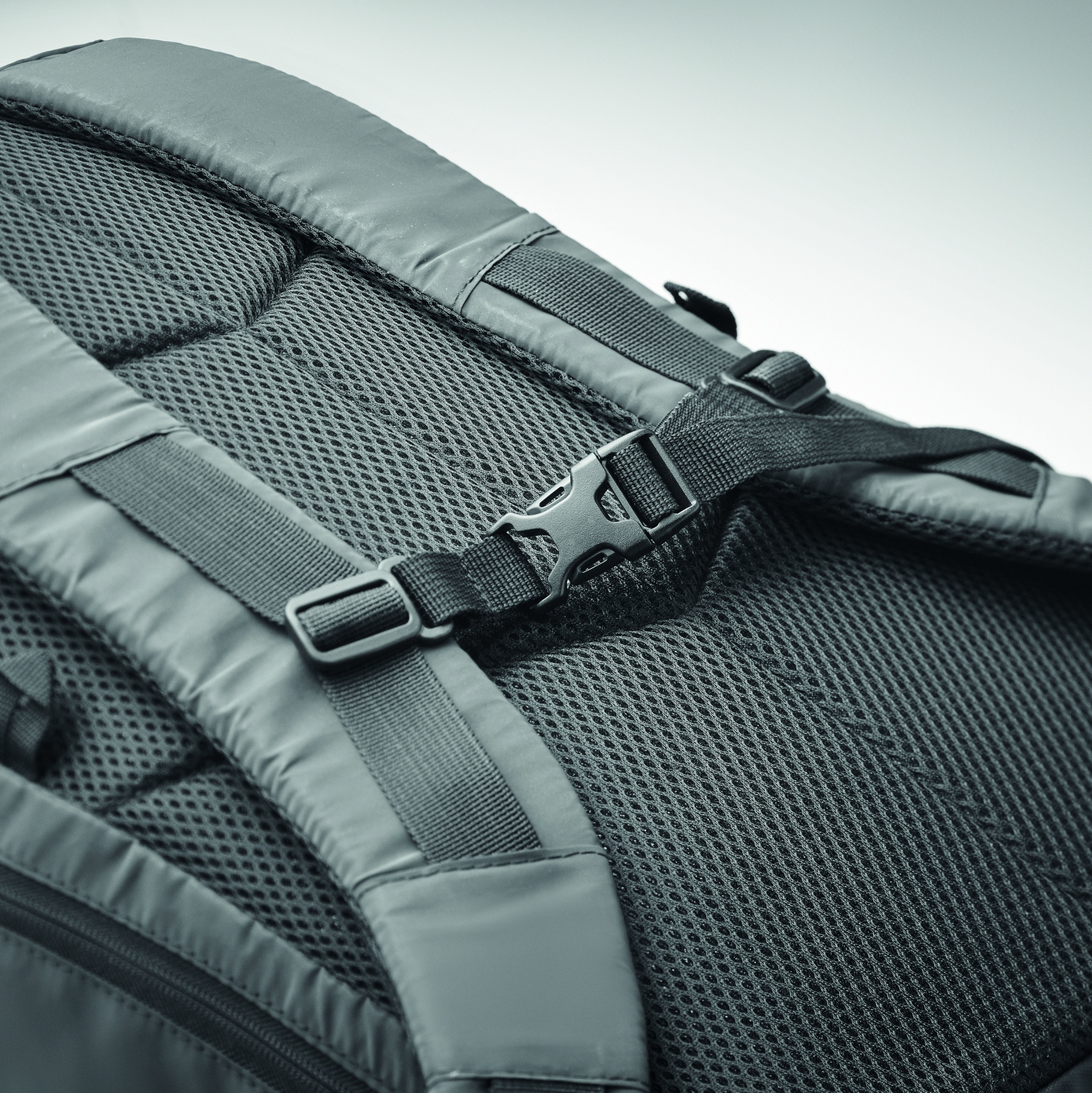 Väliseljakott 190T polüestrist, kaetud peegeldavate graanulitega. Külg lukuga välistasku ja polsterdatud seljaosa, sisevooder nöörikinnisega. Üks suur polsterdatud sisemine sülearvuti sahtel. Sellel on reguleeritavad polsterdatud õlarihmad ning reguleeritav pandlaga kinnituv rinna- ja vöörihm. Vett hülgav.
