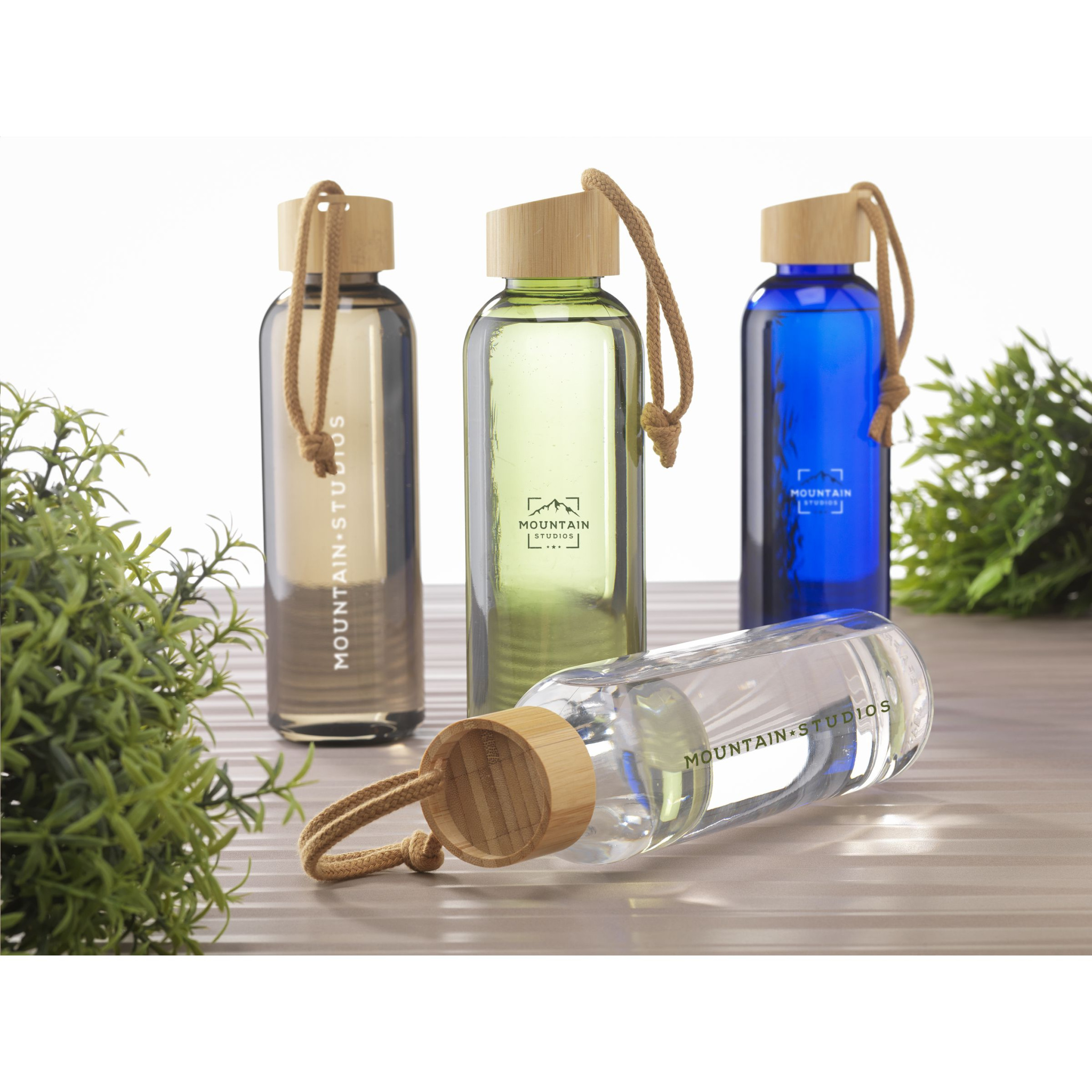 Vau! Taaskasutatav, taaskasutatud veepudel. Korpus on valmistatud 100% RPET-st. Lekkekindla bambusest keeratava korgiga, mille külge on kinnitatud käepärane kandmisnöör. Õhuke disain on eriti mugav käes hoida. Ei ole nõudepesumasinas pestav. GRS-sertifikaadiga. Taaskasutatud materjal kokku: 73%. Mahutavus 680 ml.