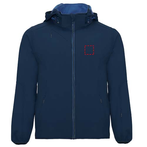 2-kihiline sportliku lõikega softshell: kontrastne keskne tõmblukk koos lõuakaitse ja tõmmitsaga. Sisevooder kontrastsest mikrofliiskangast. Paremal rinnal välistasku diagonaalselt nähtamatu lukuga. Kaks nähtamatu lukuga küljetaskut. Vasakul varrukal tasku. Varrukatel ja allääres sobiv elastne ääris. Kokkupandav kapuuts kontrastse mikropolaarse voodriga. Eemaldatav etikett. Veekindel. Tuulekindel. Meesmodell on 185 cm ja kannab suurust M ning naismodell on 174 cm ja kannab suurust S.