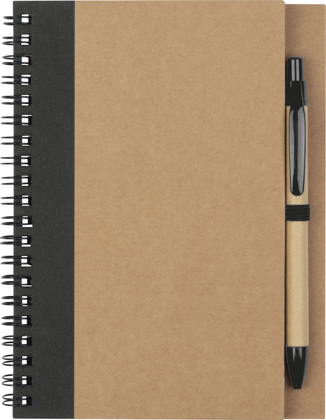Spiraalköites märkmik 120 taaskasutatud paberist tühja lehega (kaas 250 g/m2, lehed 60 g/m2) ja pliiatsiaas. Kaasas on sobiv taaskasutatud paberist pastapliiats, millel on asendamatu sinise kirjaga täidis ja ABS-plastist aktsent.
