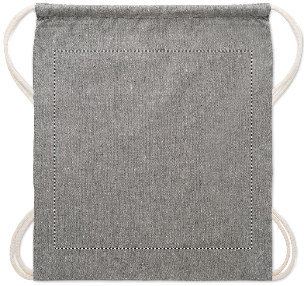 Pingutusnööriga kott taaskasutatud puuvillast (80% taaskasutatud puuvill, 20% tavaline puuvill). 140 gr/m².