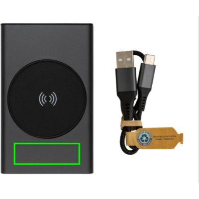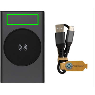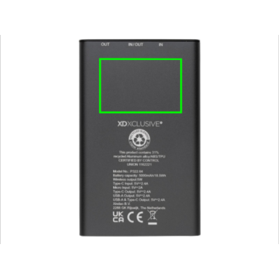 Powerbank on valmistatud RCS (Recycled Claim Standard) sertifitseeritud taaskasutatud alumiiniumist ja ABS-ist. Kogu taaskasutatud sisaldus: 31% kauba kogukaalust. RCS-sertifikaat tagab taaskasutatud materjalide täielikult sertifitseeritud tarneahela. Alumiinium ei kaota ringlussevõtu käigus oma omadusi ja seda saab ringlusse võtta lõputult. Akupank sisaldab kauakestvat A-klassi 5000 mAh liitiumpolümeerakut. Juhtmeta laadija toetab juhtmevaba laadimist kuni 5W. Toiteindikaatorid näitavad järelejäänud energiataset, nii et teate alati, millal laadida. Toode ja tarvikud 100% PVC-vaba. Sisaldab C-tüüpi laadimiskaablit, mis on valmistatud RCS-sertifikaadiga taaskasutatud alumiiniumist, TPE-st ja PET-st. Pakitud FSC® segupakendisse. USB-väljund 5/2,4A, C-tüüpi väljund: 5V/2,4A. C-tüüpi sisend: 2,4A. Mikro-USB sisend: 5V/2A.