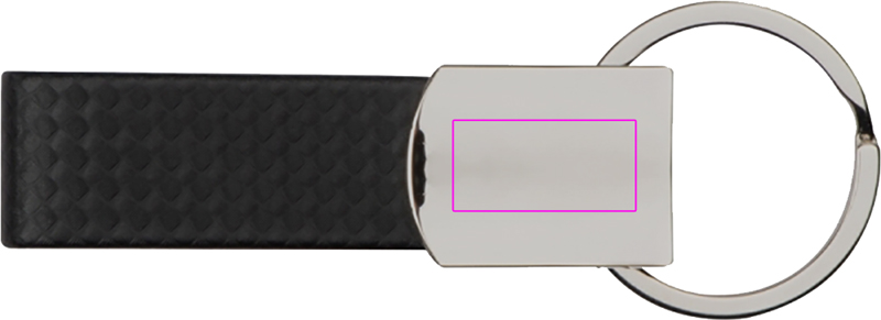 Elegantne metallist võtmehoidja süsiniku välimusega rihmaga. Teie logo graveeritakse kroomitud pinnale.