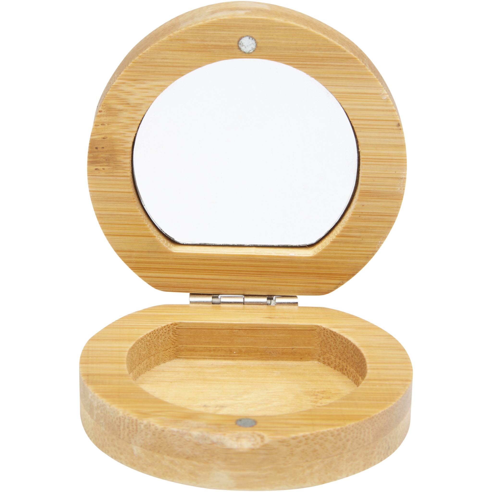 Kompakti bambusta valmistettu taskupeili matkalle tai päivittäiseen ihonhoitoon tai meikkaukseen. Peilin alareunassa on pieni lokero pikkutarvikkeille. Bambu on hankittu ja valmistettu kestävän kehityksen standardien mukaisesti.