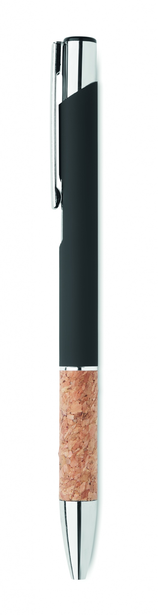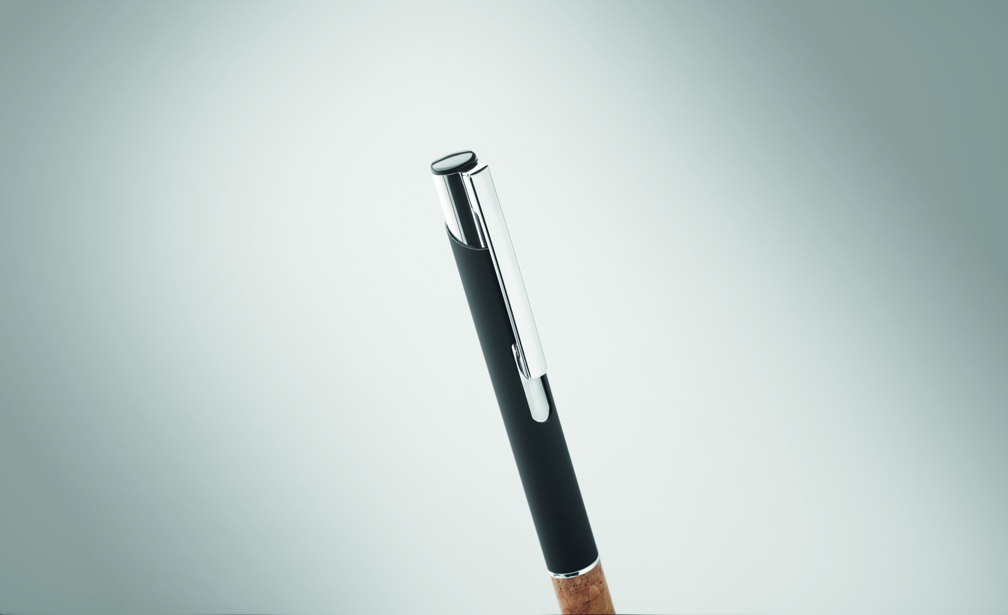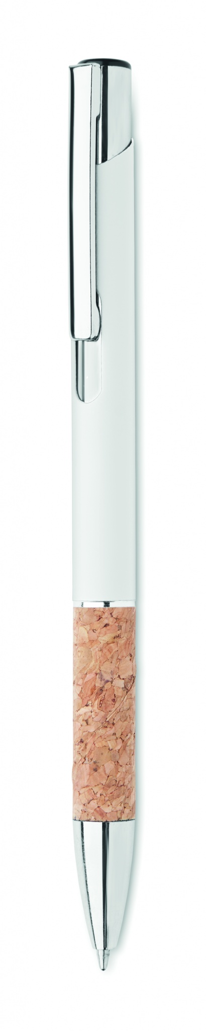 Alumiinista valmistettu kuulakärkikynä, jossa on otekohta korkkia. Sininen muste.