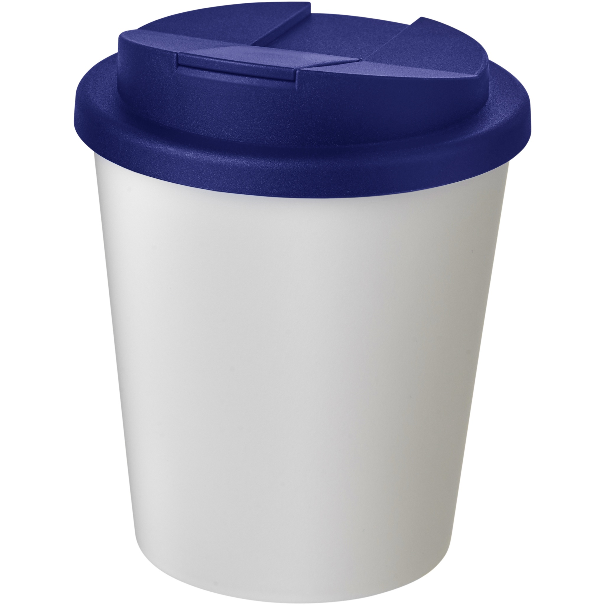 Kompakti kaksiseinäinen eristetty muki, jossa on turvallinen kierrettävä ja läikyttämätön kansi. Ei sisällä silikonia, voidaan kierrättää täysin. Mukia ympäröi värillinen, materiaaliin upotettu kuvio, joten se on pitkäikäinen ja kestävä. EN12875-1-vaatimusten mukainen; konepestävä ja voi käyttää mikroaaltouunissa. Tilavuus on 250 ml. Sekoita värejä ja luo täydellinen muki. Valmistettu Isossa-Britanniassa. Pakattu kierrätettyyn PE muovipussiin. EN12875-1 standardin mukaisesti astianpesukonepestävä sekä mikroaaltouunin kestävä.