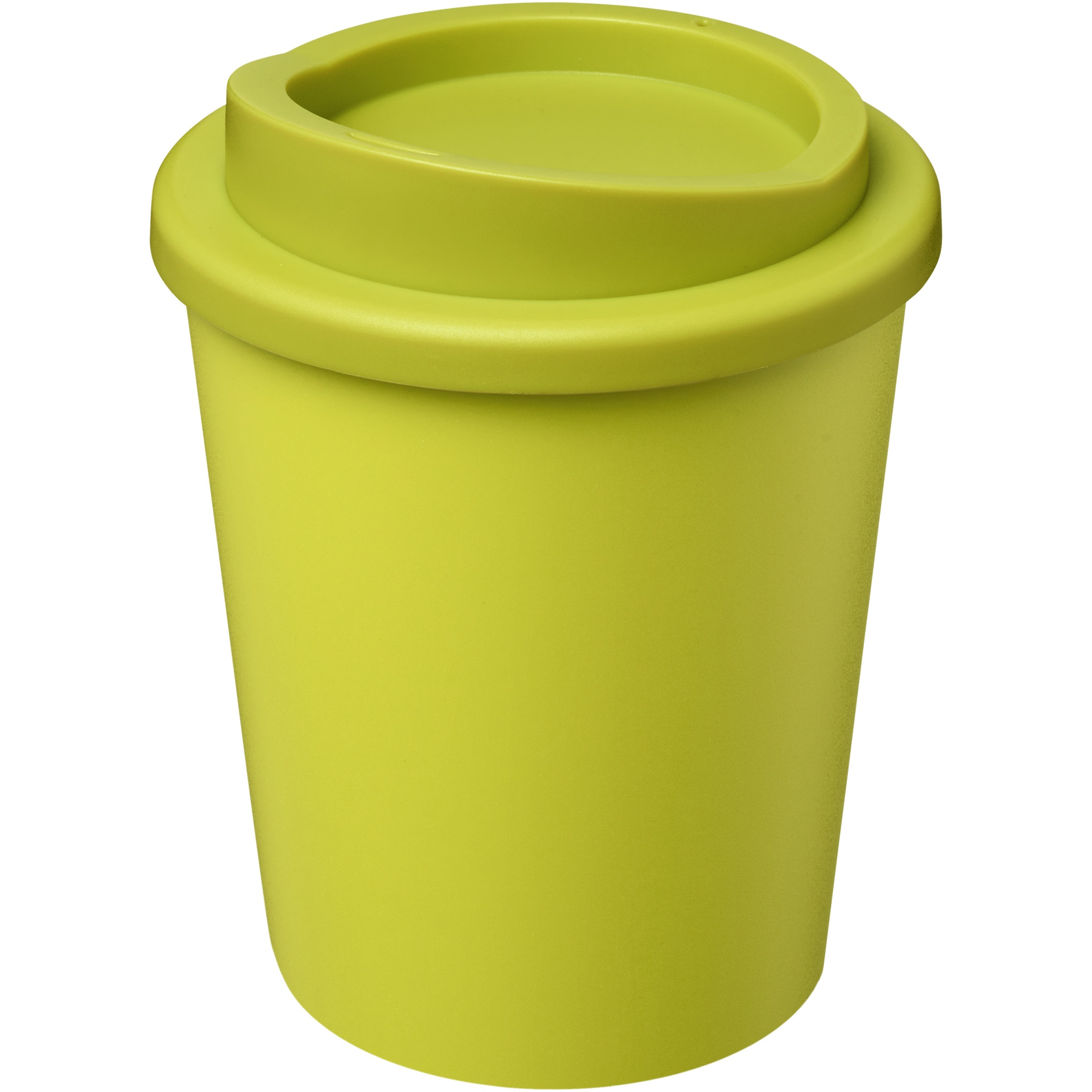 Kompakti kaksiseinäinen eristetty kahvimuki kierrekannella. Sopii useimpien kahvinkoneiden alle. Kahvimuki on valmistettu kokonaan kierrätetystä PP-muovista, ja kansi on valmistettu elintarvikeluokan PP-muovista, kokonaisuutena näin 70% on kierrätettyä. Koska kansi ei ole valmistettu kierrätetystä materiaalista, sen voi tilata monissa eri väreissä. Muki on täysin kierrätettävä. Kierrätysmateriaalin luonteesta johtuen mustan sävy voi hivenen vaihdella. Tilavuus on 250 ml. Valmistettu Isossa-Britanniassa. Pakattu kierrätettyyn PE muovipussiin.