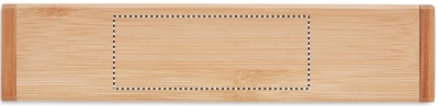 Bambu kuulakärkikynä sinisellä musteella bambu lahjarasiassa. Luonnollisen materiaalin (bambu) vuoksi, tuotteiden värissä/ koossa saattaa olla erinäisyyksiä ja tämä voi vaikuttaa painatuksen lopputulokseen.