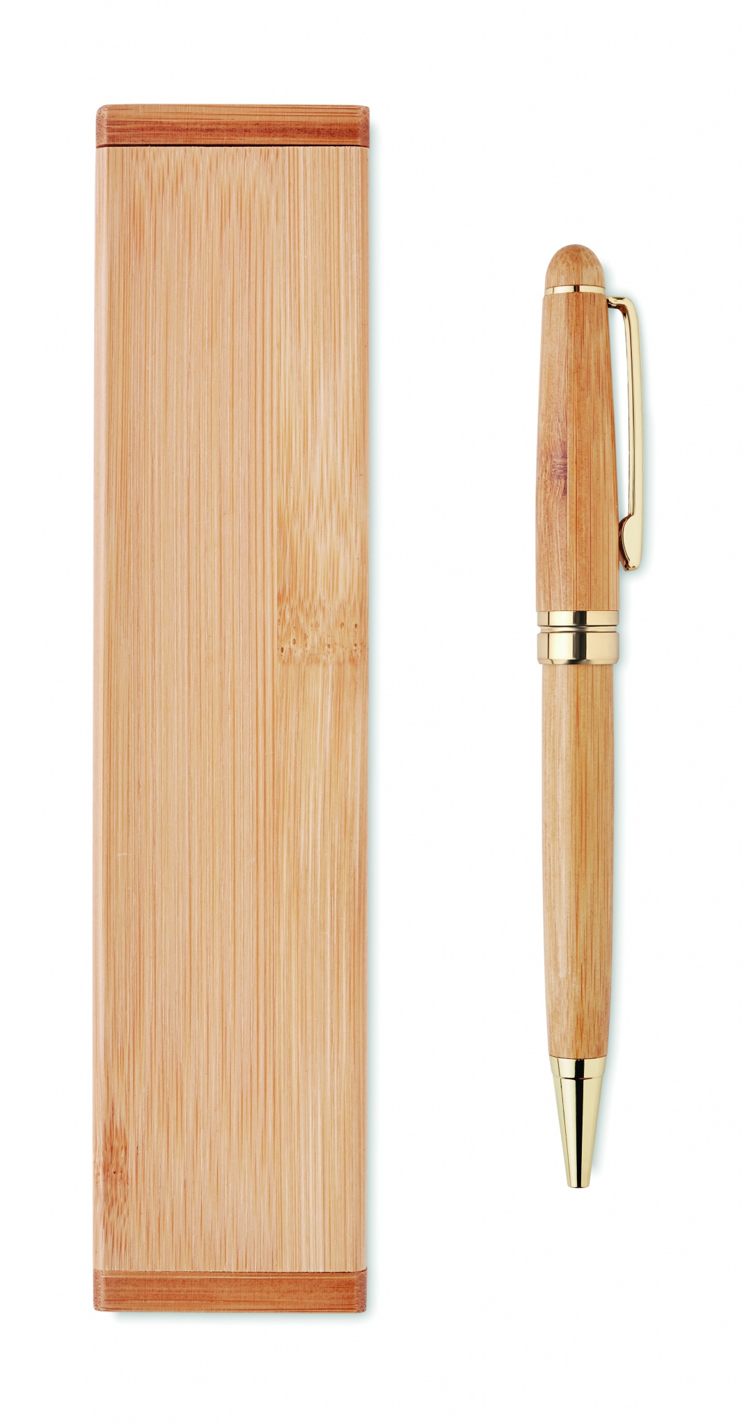 Bambuinen kiertomekanismilla varustettu kuulakärkikynä laatikossa, Puu