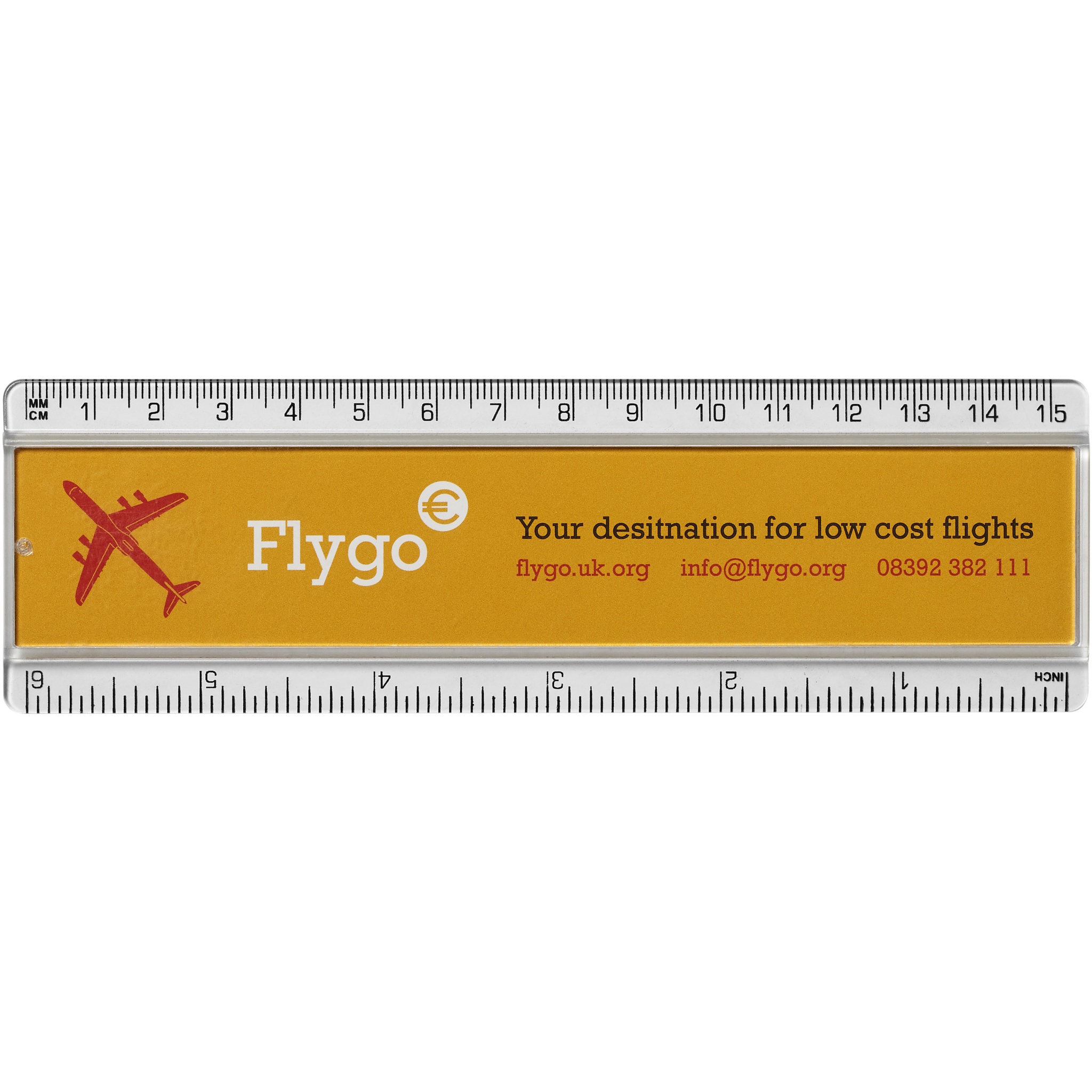 Logo trade liikelahja kuva: Ellison-viivain paperi-insertillä, 15 cm, muovinen