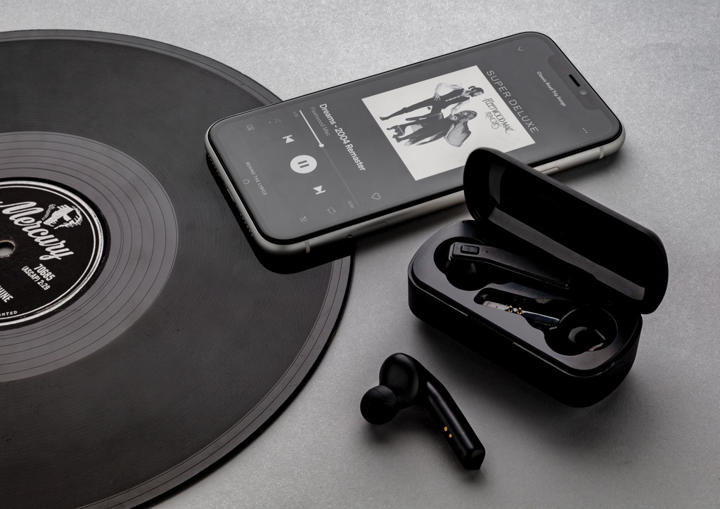Logotrade liikelahjat kuva: Free Flow -TWS nappikuulokkeet latausrasiassa
