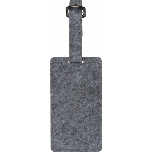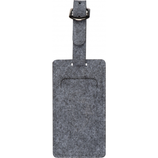 Huopainen matkatavaralappu säädettävällä kiinnikkeellä ja saranoidulla kansilla osoitekentän päällä. Painamme logosi yhdelle puolelle.
