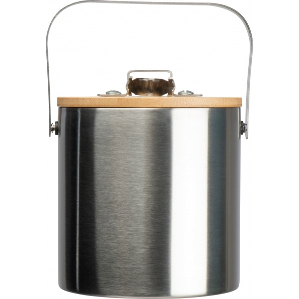 Kaksiseinäinen ruostumattomasta teräksestä valmistettu jääastia, jossa kantokahva, bambukansi, tarttuja ja täyttötilavuus 1200 ml. Logosi kaiverretaan laserilla ämpäriin.