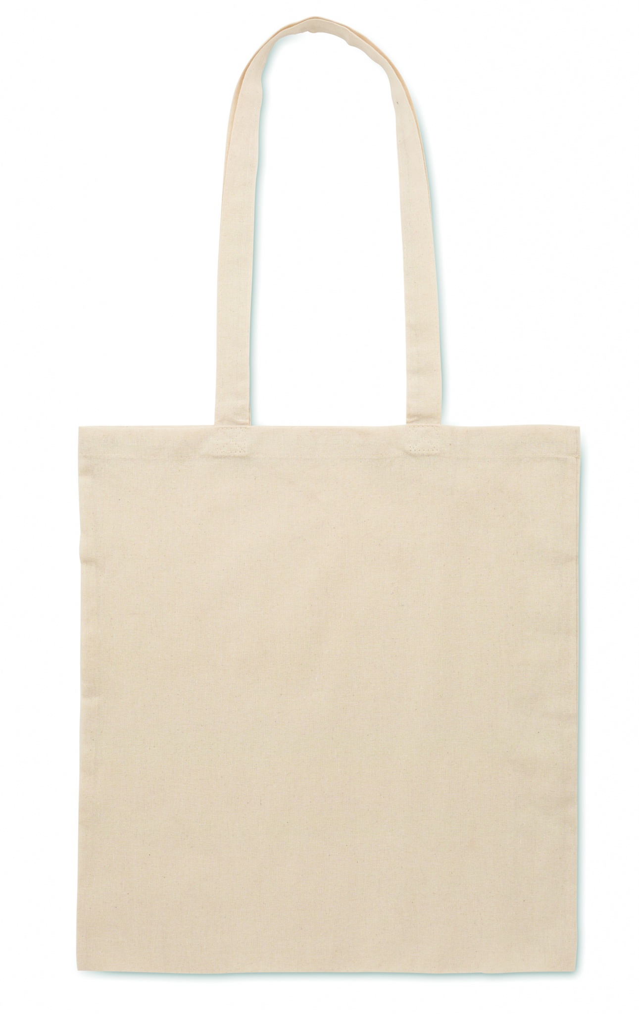 Kassi puuvillapolysteria (70% puuvilla and 30% polyesteri) Kassissa pitkät kahvat. 130 gr/m².