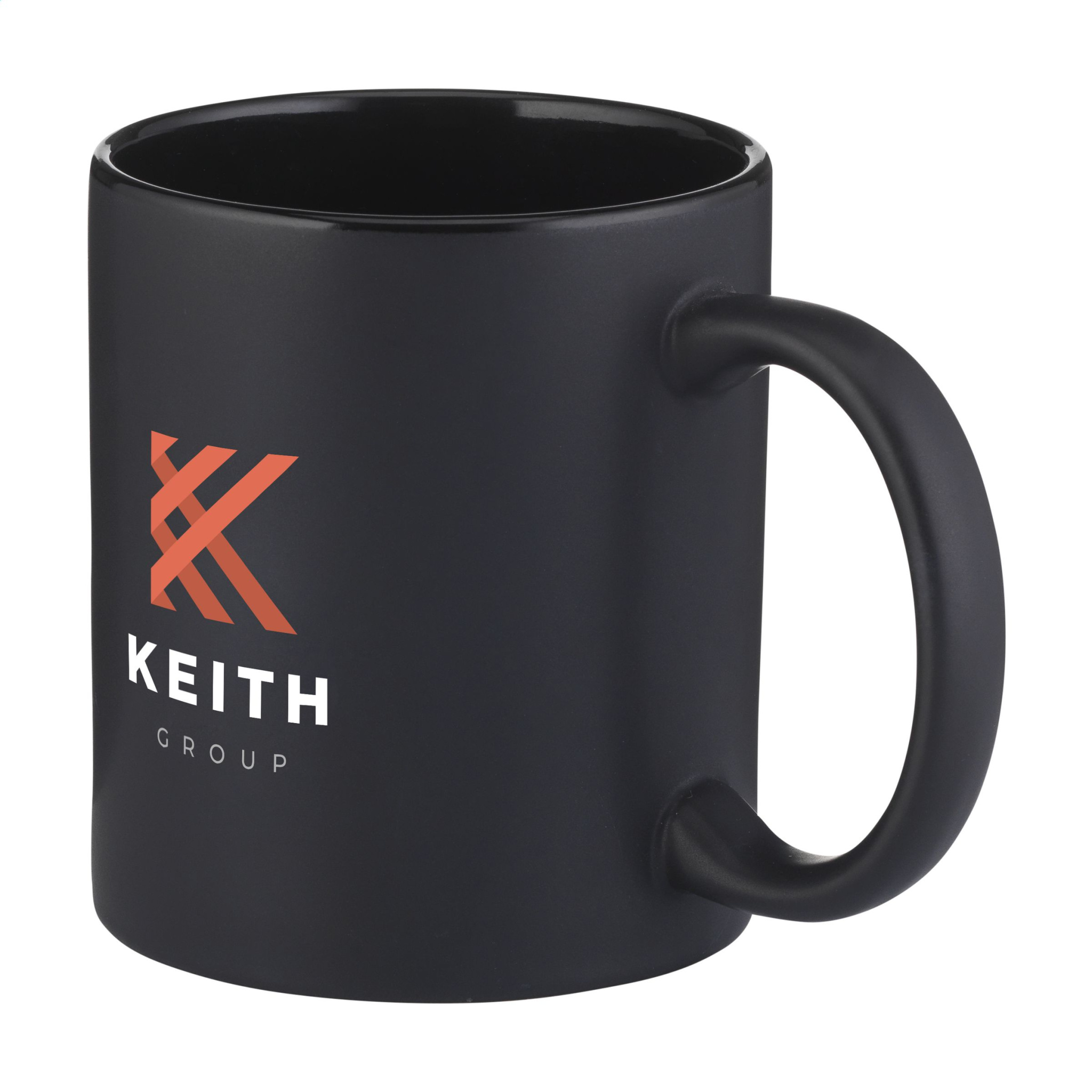 Laadukas keraaminen muki, jossa on mattamusta ulkopinta ja kiiltävä musta sisäpuoli. Astianpesukoneen kestävä. Jälki on astianpesukoneessa testattu ja sertifioitu: EN 12875-2. Tilavuus 350 ml.