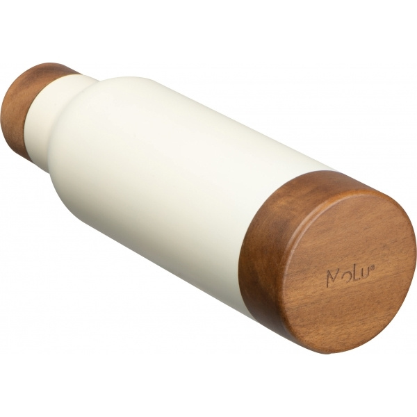 Kierrätetystä ruostumattomasta teräksestä valmistettu kaksiseinäinen lämpöpullo, jossa akaasiapuukorkki ja pohja. Tilavuus 630 ml