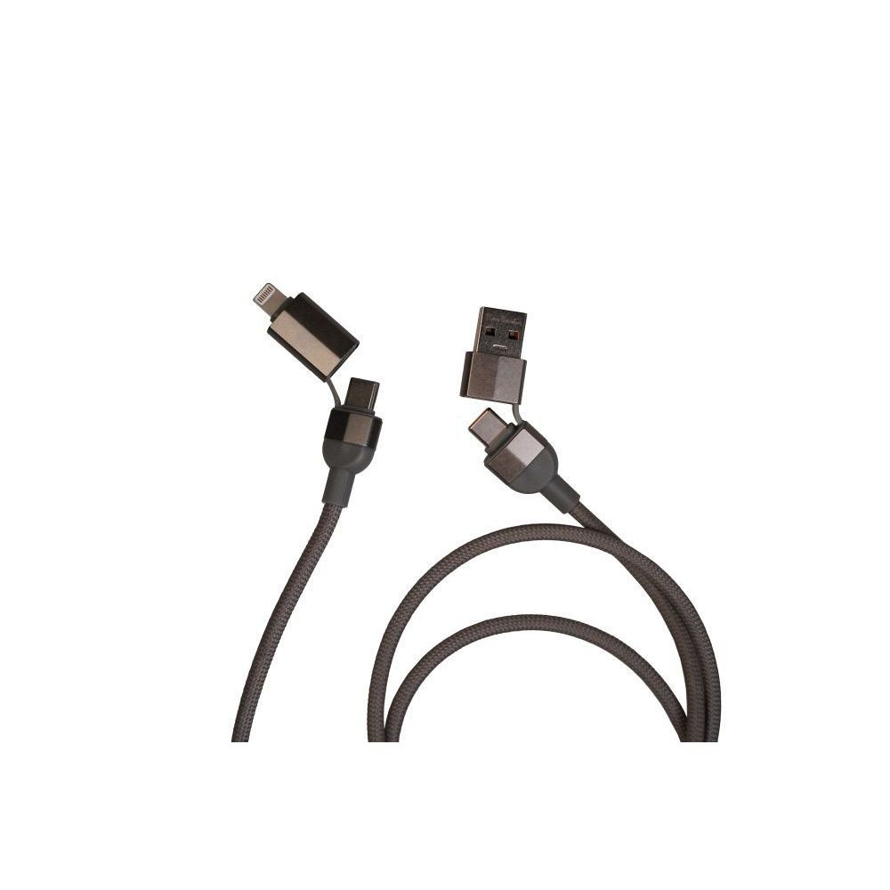 Pierre Cardinin magneettinen 100 W pikalataus- ja datakaapeli. Kaapeli on valmistettu alumiinista, punottu nylonilla, aina huolellisesti taitettu magneetin ansiosta. Kaapeliliittimet: tulo USB-A, USB-C; lähtö USB-C, Ligntning. Kaapelin pituus on 100 cm. Pakattu lahjarasiaan, mukana tulee aitoustodistus.