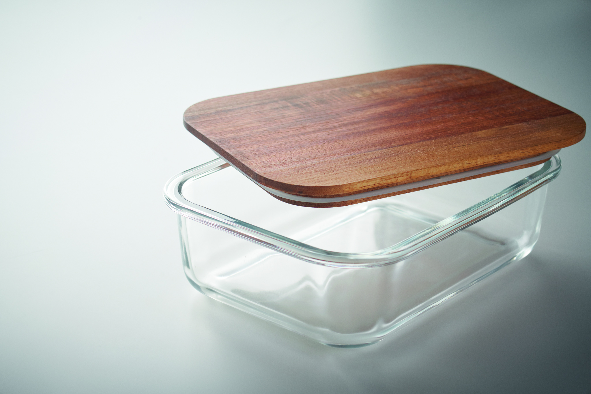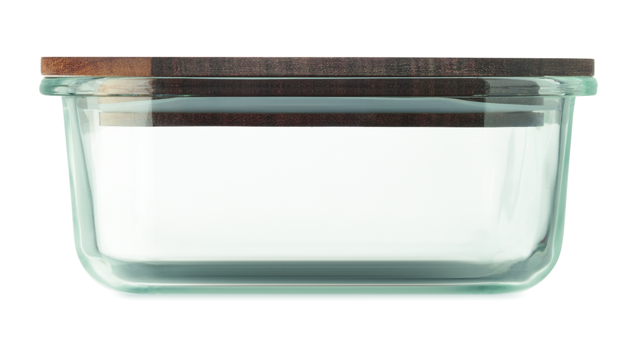 Lasinen lounasrasia, jossa akaasiapuinen kansi ja RPET-kuminauhasuljenta. Tilavuus: 800 ml FSC®-certified | FSC 100%, W16.3, FSC-C213206
