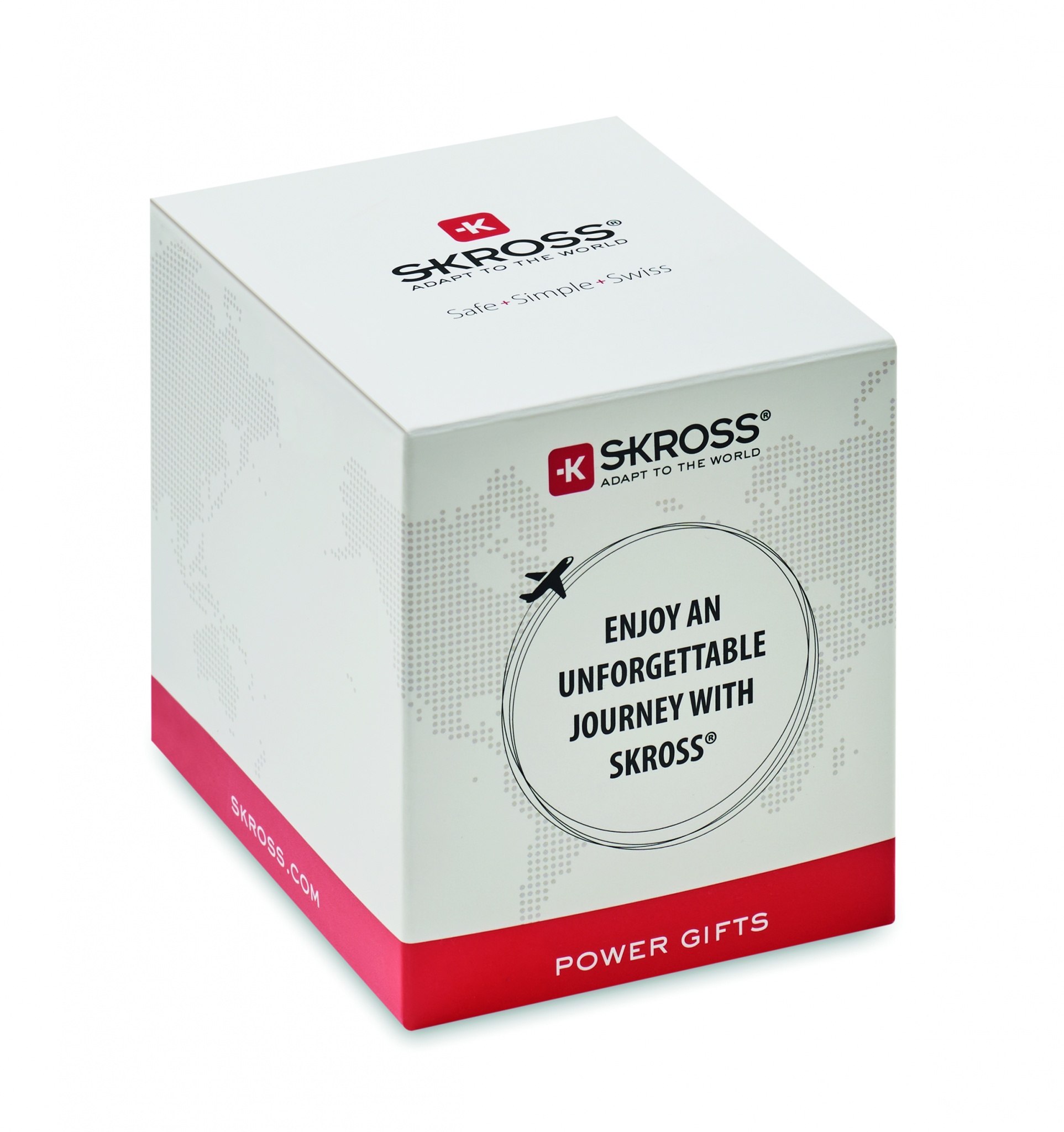 SKROSS® MUV USB A/C. Maailmanmatka-adapteri, jossa on 15W USB C-tyypin ja 12W A-tyypin portit.