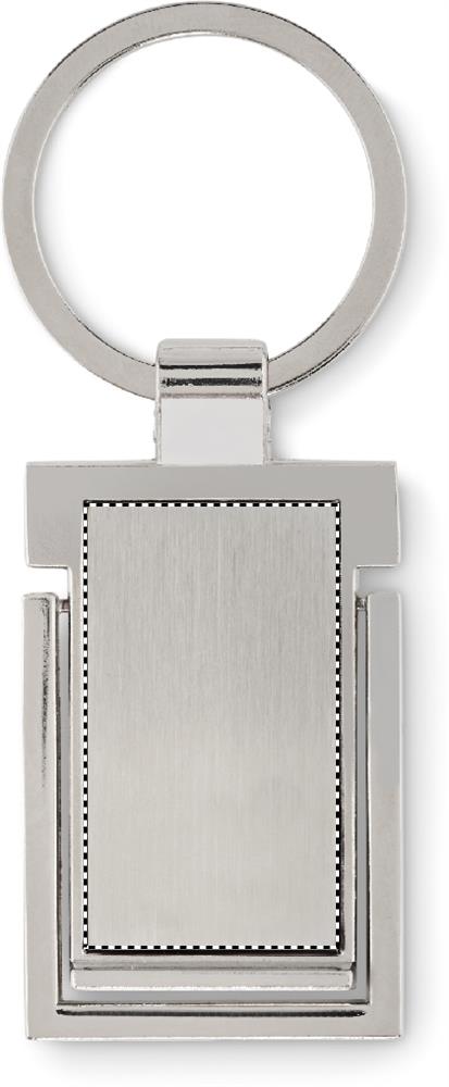 Metallinen avaimenperä joka toimii myös puhelintelineenä.