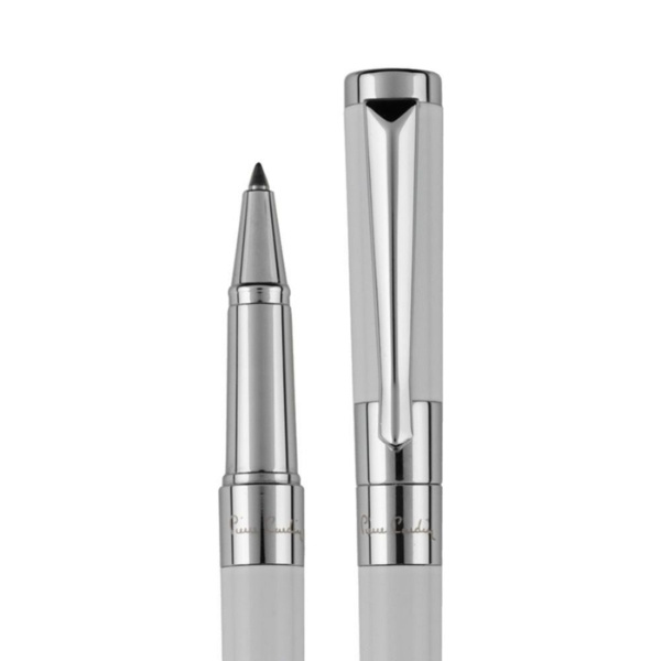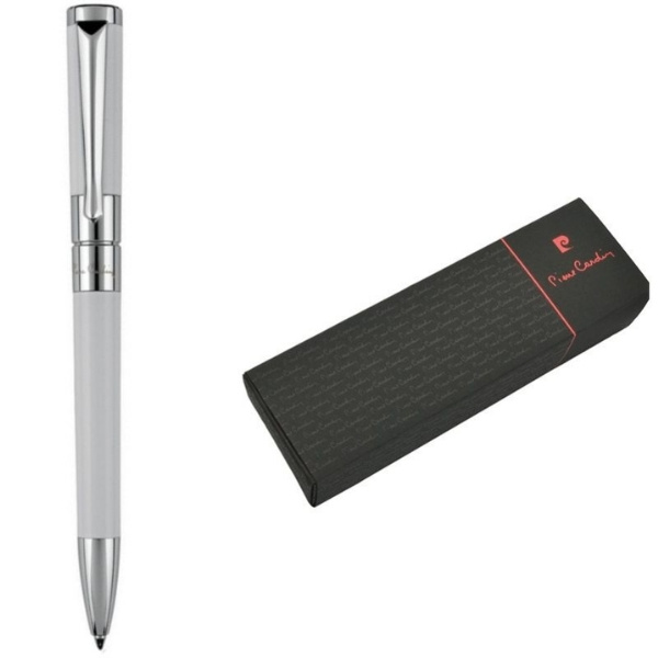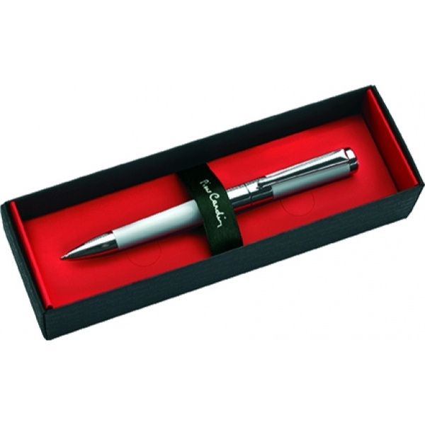 Tyylikäs ja merkkituotemerkkinen metallikuulakynä Pierre Cardin valkoisena hopeisilla yksityiskohdilla. Kynässä on pyörivä mekanismi ja laadukas sininen täyttö, jonka kärki on 1 mm. Sen mukana toimitetaan myös ylimääräinen musta täyttöpakkaus. Pakattu luksuslaatikkoon Pierre Cardin, mukana tulee aitoustodistus.
