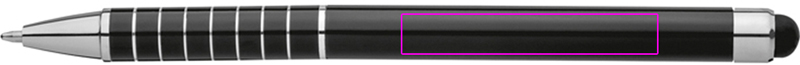 Kierretty metallikuulakynä, jossa on kosketustoiminto ja sininen kirjoitustäyttö. 8 kaiverrettua rengasta tekevät kirjoittamisesta kätevää. Logosi laserkaiverretaan klipsien alle.