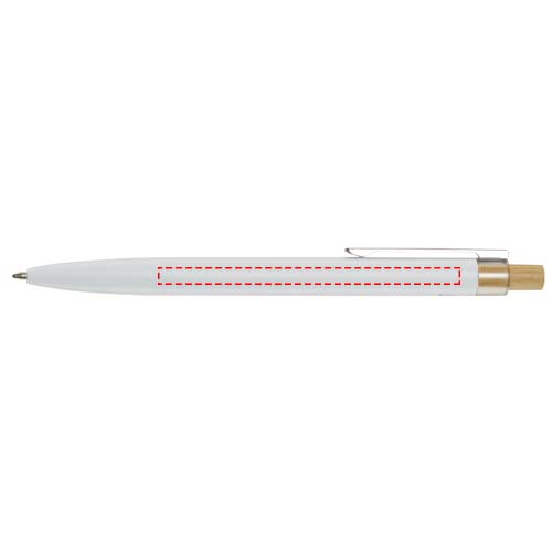 Nooshin-kuulakärkikynä on valmistettu kierrätetystä alumiinista, mikä vähentää energian kulutusta verrattuna alumiinin valmistamiseen ensiöraaka-aineista. Se myös vähentää kaatopaikoille päätyvän jätteen määrää ja auttaa säästämään luonnonvaroja kasvihuonepäästöjen vähentämiseksi. Painike on valmistettu bambusta. Musteen väri: Sininen. Kirjoituspituus: 800 metriä. Kärjen paksuus: 1,00 mm.