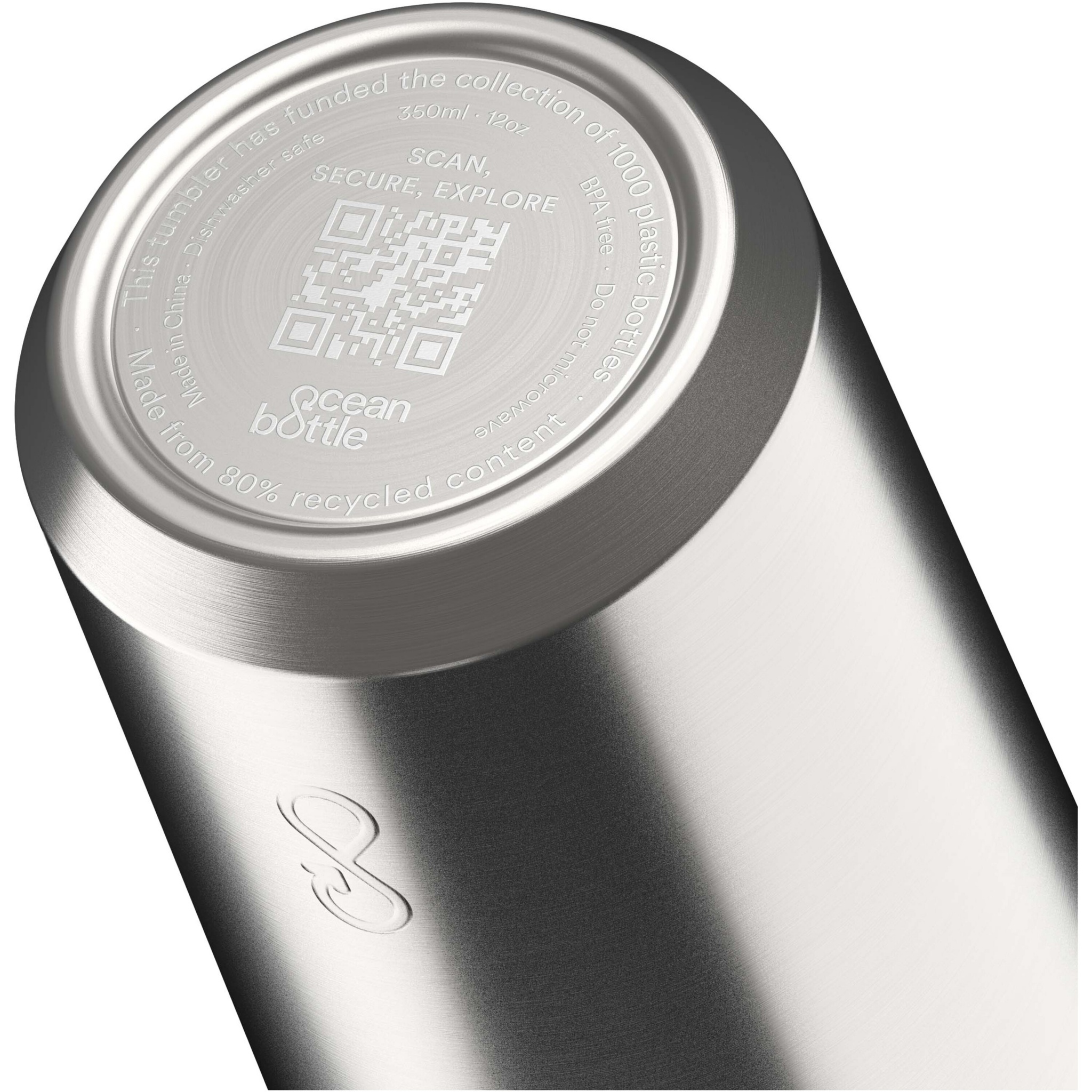 350 ml:n Ocean Bottle -termosmukin kaksiseinäinen eristys pitää juomat kuumina jopa 4 tuntia ja kylminä jopa 10 tuntia. Se sopii ongelmitta useimpien kahvikoneiden alle sekä useimpien autojen mukitelineisiin. Jokainen matkamuki on täysin hiilineutraali, ja sen valmistamista varten on kerätty 1 000 muovipulloa rannikoilla asuvien yhteisöjen elinolojen parantamiseksi. Muki on valmistettu 90-prosenttisesti kierrätetystä ruostumattomasta teräksestä ja muista kierrätetyistä materiaaleista. Toimitetaan vastuullisesti kierrätyskartongista valmistetussa lahjapakkauksessa.