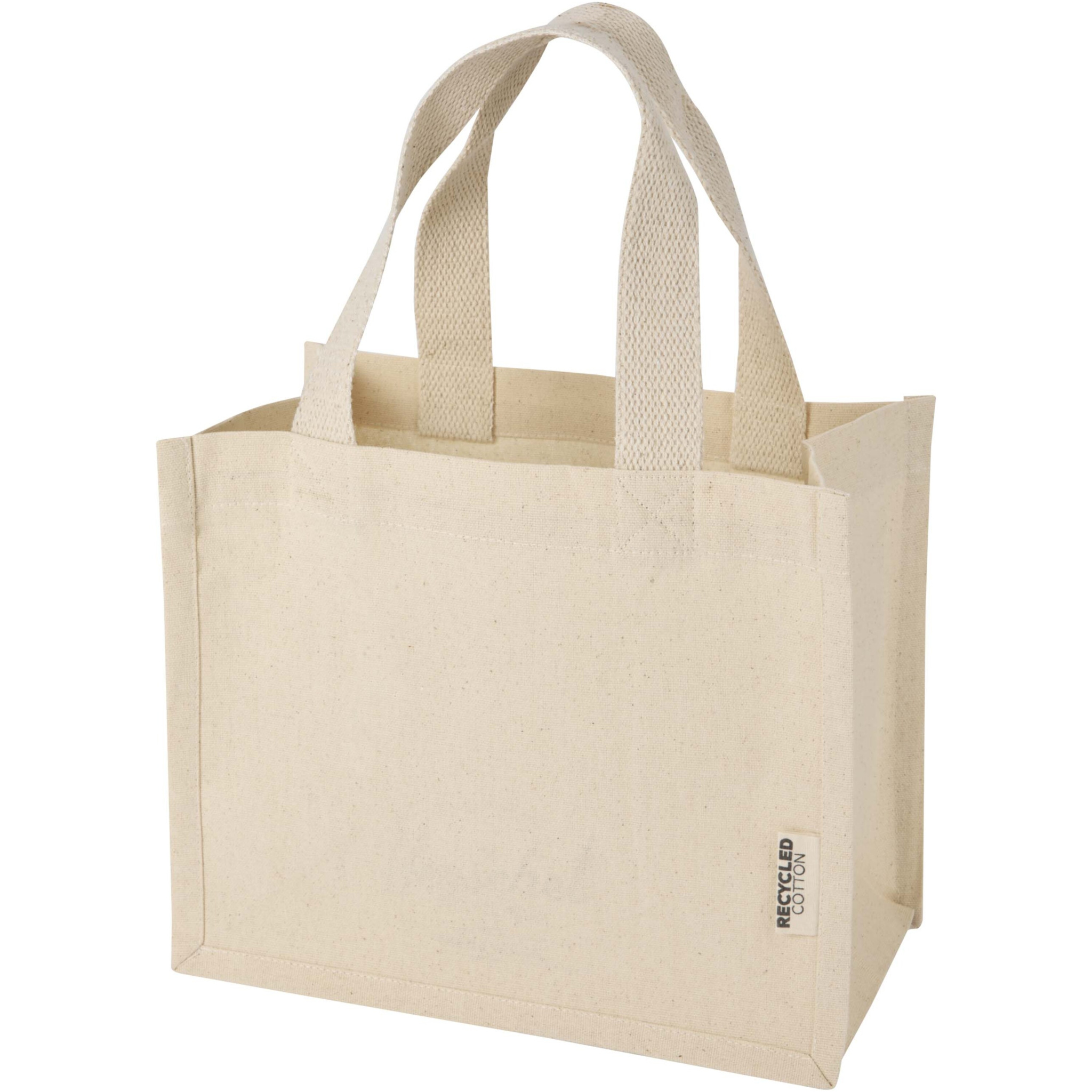 100-prosenttisesti GRS-kierrätetystä 220 g/m²:n puuvillasta valmistettu Odessa-minikangaskassi vahvikkeilla on suunniteltu niin, että sitä on miellyttävä kantaa 35 cm pitkien kahvojen ja suuren tilan ansiosta. Tämä kompakti kassi on täydellinen valinta tabletin, kirjan tai muutaman välttämättömyysesineen säilyttämiseen, päivittäisten asioiden hoitoon tai rentoihin illanviettoihin. Siihen sopivat painatusmenetelmät ovat myös GRS-sertifioituja, millä varmistetaan, että koko toimitusketju on läpinäkyvä ja sertifioitu. Valmistettu Intiassa.