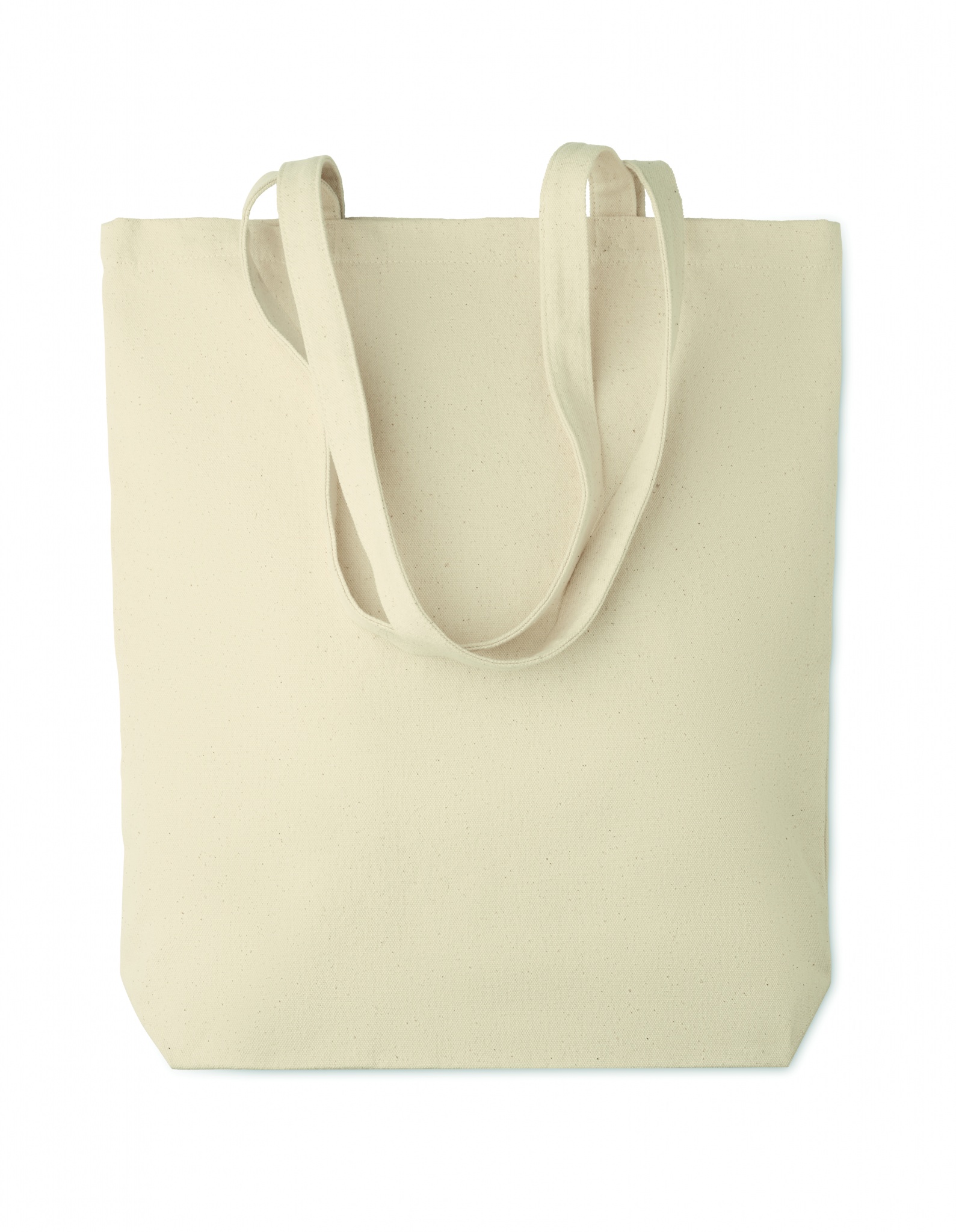 270 gr/m² canvas ostoskassi pohjalevikkeellä ja pitkillä kahvoilla.